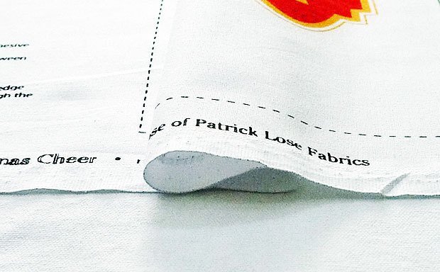 作り方通り作ると両端がサンタクロースの顔、中の方は雪の結晶などのクリスマス・ストライプと言うテーブル・ランナーが出来上がります。テーブル・ランナーの出来上がりサイズは巾約37cm、長さ約160cmです。