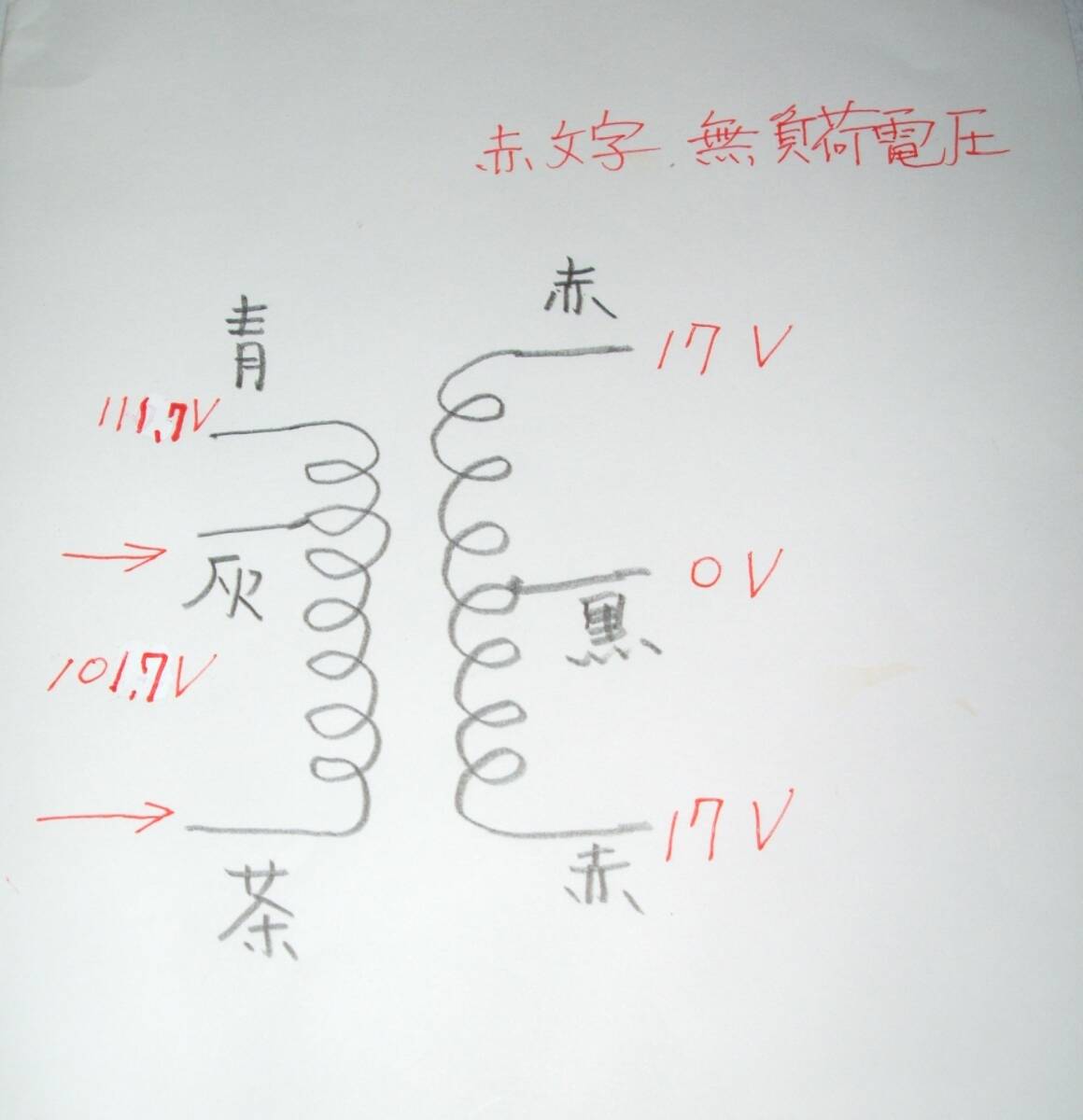 1次100V電源を100V端子に接続すると、無負荷の2次電圧は17.2Vです。