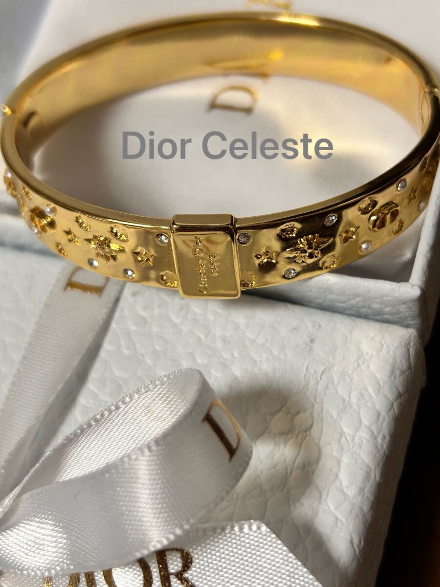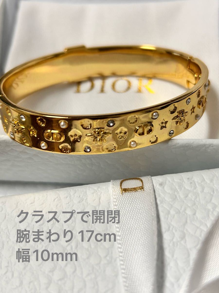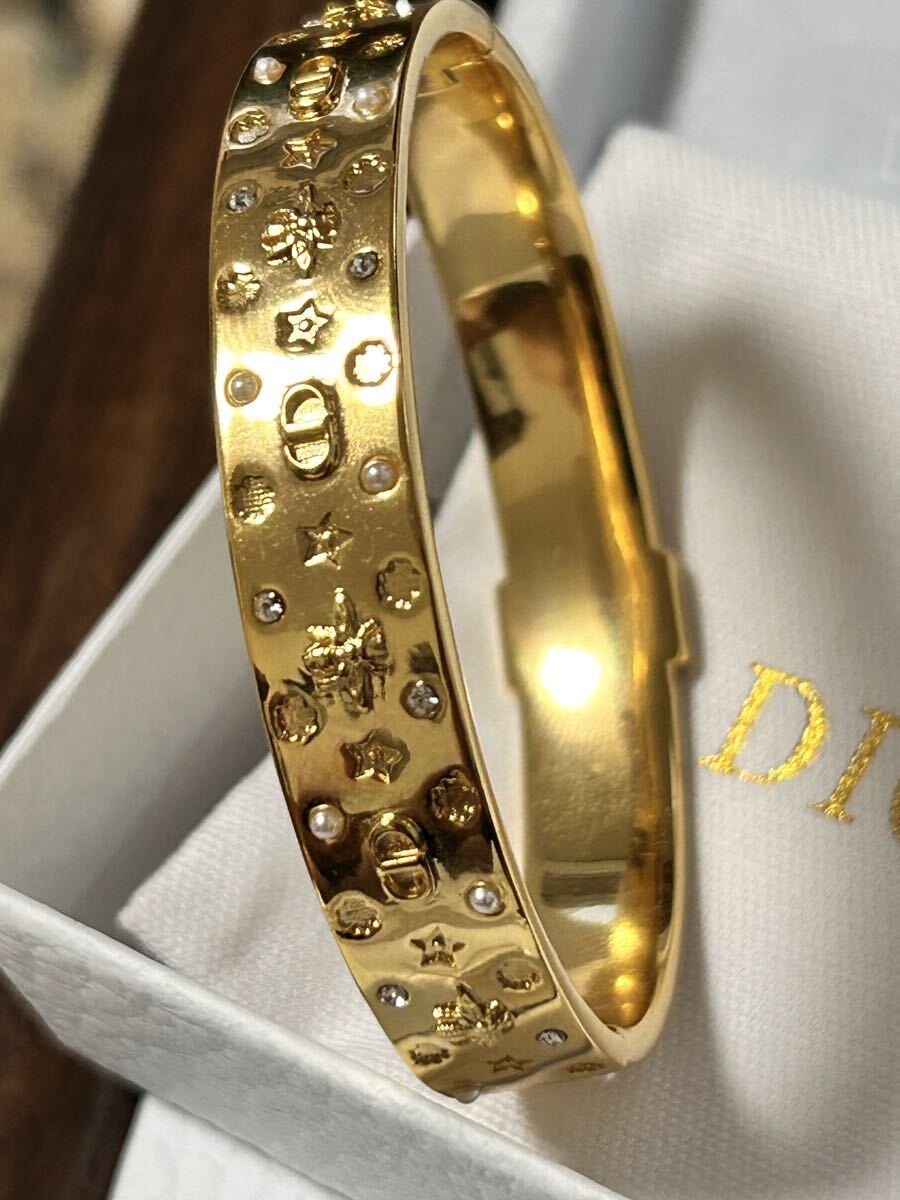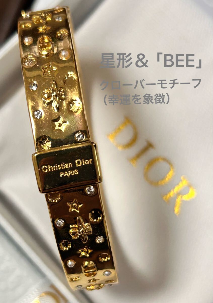 【極美品】Dior Celeste バングル クラスプで開閉 腕まわり17cm 幅10mm 18金ゴールド クローバー、スター、‘BEE’華やかに