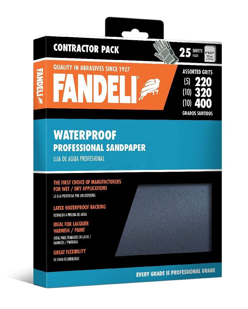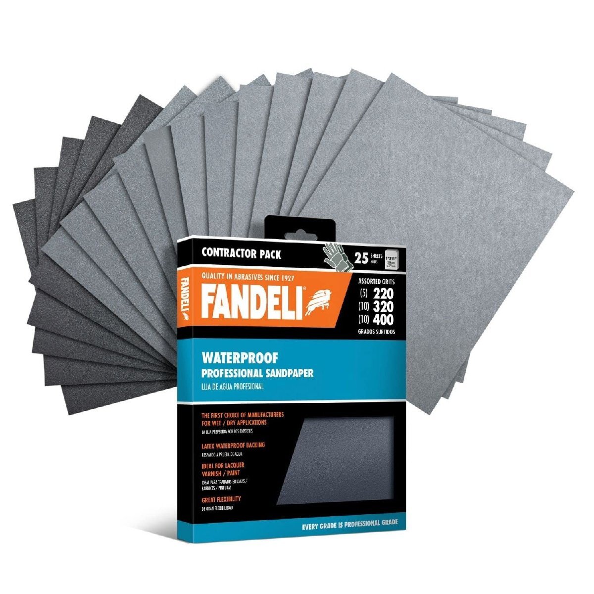 ブランド:Fandeliサイズ:23cm×28㎝メキシコ発!世界30ヵ国で愛用されるFandeli(ファンデリ)の耐水サンドペーパー。1927年の創業以来、世界中のプロフェッショナル及びDIY愛好者に支持され続けています。23cm×28㎝でプロ仕様の大判サイズで、用途によって使いやすい#220(5枚)、#320(10枚)、#400(10枚)の25枚入った耐水紙ヤスリセット。しっかりとした厚みのある丈夫なスーパーヘビータイプで、ハンドサンダーはもちろん、DIY用の電動研磨機にも使える耐水サンドペーパーセットです。