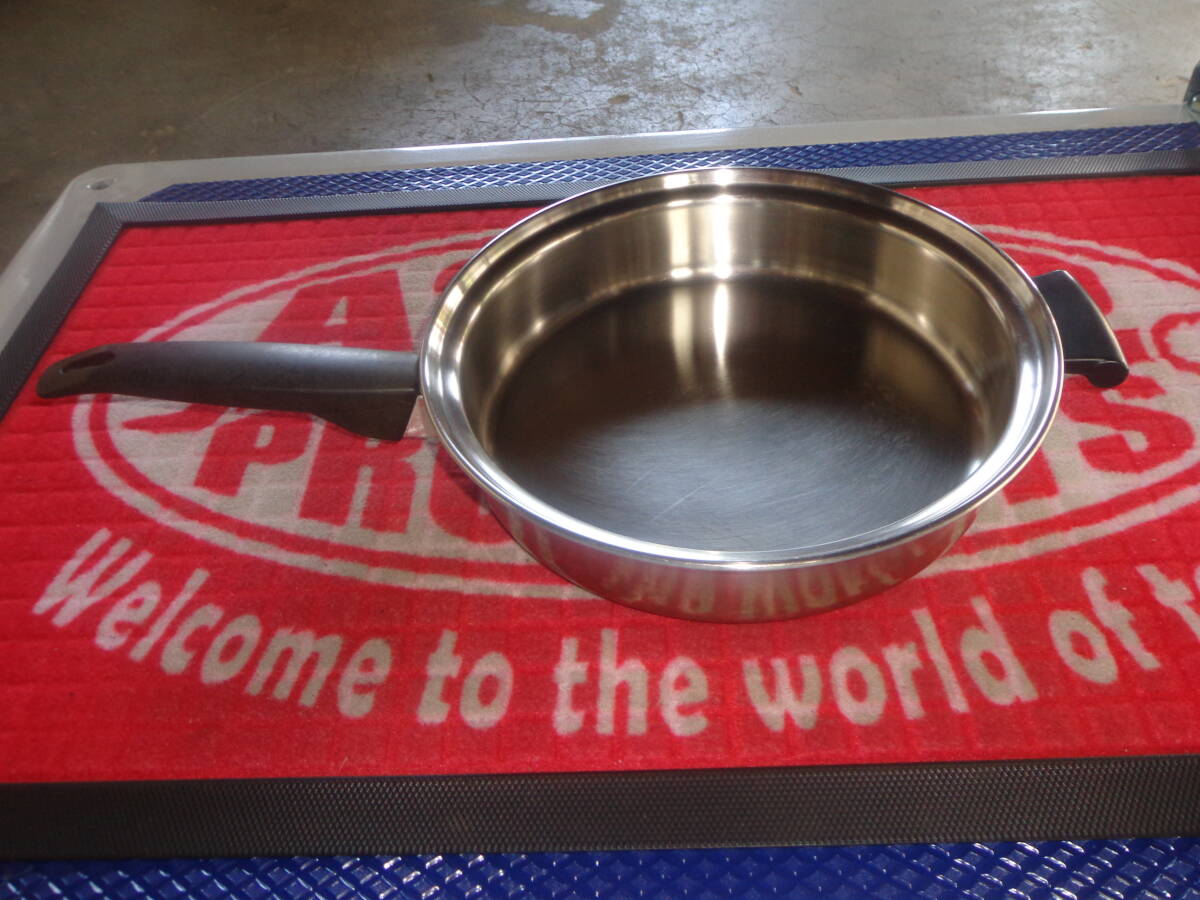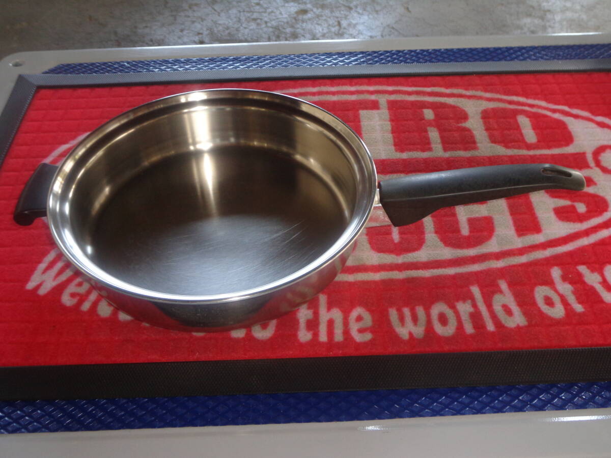持ち手を含む全長約48cm、外径約27.5cm、内径約24cm、深さ縁まで約5cm