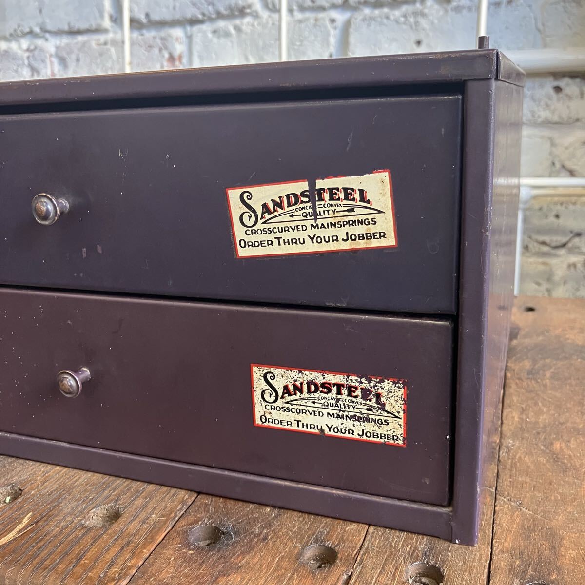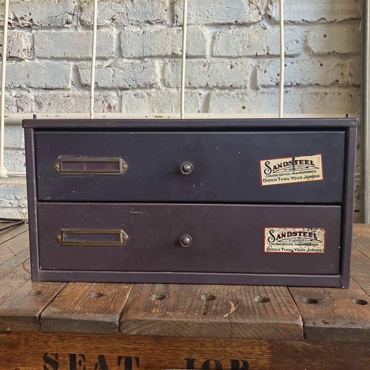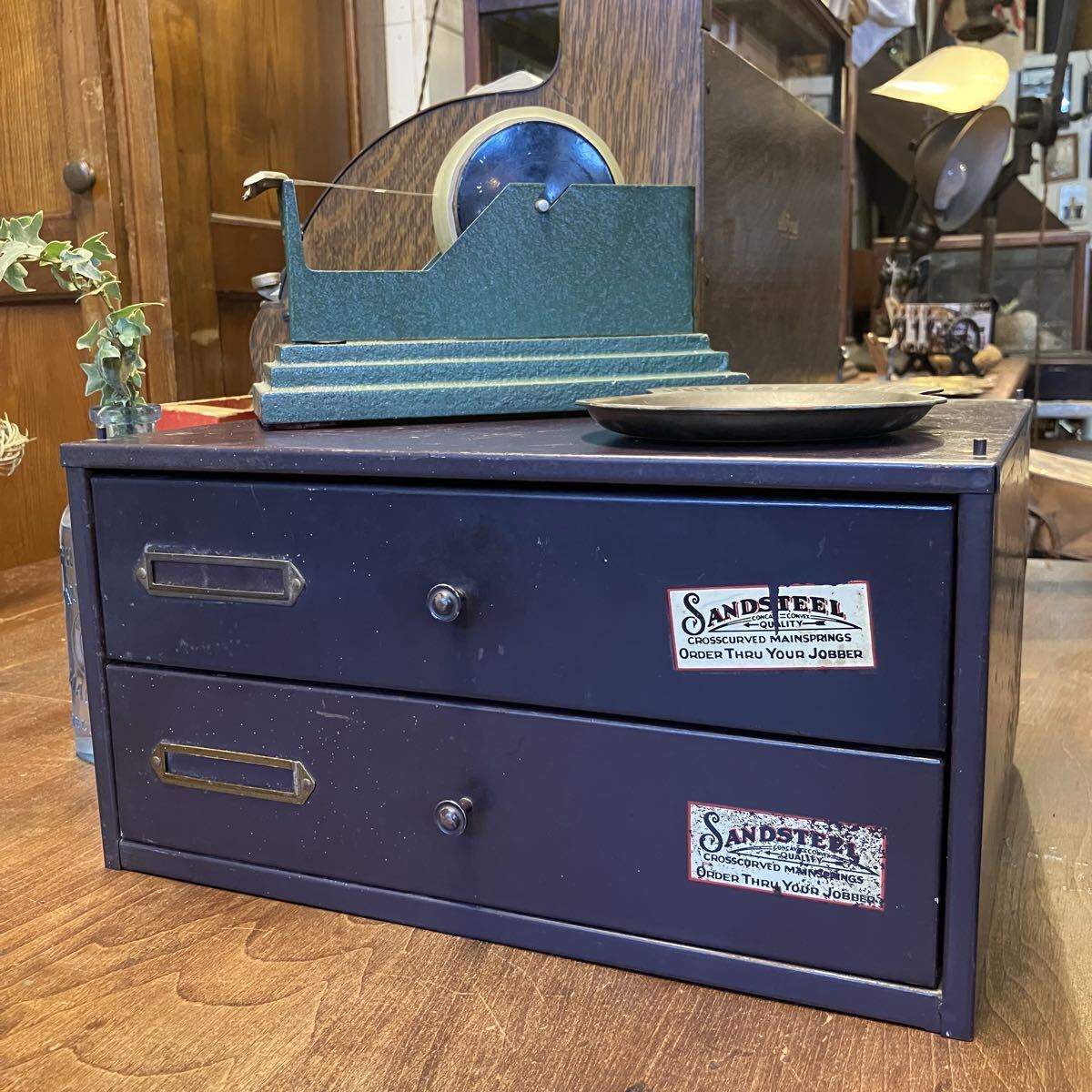 はじめましてRim ANTIQUESです。 ご覧いただきありがとうございます。 【商品説明】 アメリカで購入したキャビネット です。 時計のパーツを作っていたSANDSTEEL社の引き出しです。 デカールが傾いているのも味ですね。 当時キャビネットを重ねていたのか、上部角にに突起があります。 シンプルな2段の引きだしで、上に物を置く事もできます。 実用的なヴィンテージアイテムです。 右後ろ下大きな凹み、全体に汚れ、サビございます。 画像ご確認お願い致します。 撮影に使用した小物はつきません。 送料は無料です。 発送はゆうパック で送ります。 他にもアメリカで買い付けた商品を出品してますのでご確認下さい。 是非ウォッチリスト、フォロー宜しくお願いします。 新入荷商品はインスタグラムでアップしています。ご覧下さい! インスタグラムにはホームページから飛べます。 コチラ 【サイズ】 高さ(突起含めて)18 cm 幅34 cm 奥行き26cm ※実寸になります。若干の誤差はご了承さい。 【状態】 キズ、汚れ などはありますが古い物なので味とお考え下さい。 こちらの商品はビンテージ品になります。 長い年月を経て生じたダメージも味わいであると考えております。 ご理解いただける方のみ、入札ください。 また、状態の良し悪しは個人差がありますので、神経質な方はご遠慮下さい。 いかなる場合でもノークレーム、ノーリターンでお願いします。 【Rim ANTIQUES】 個人でアメリカから買い付けた雑貨や家具を販売しています。 都営新宿線 篠崎駅徒歩6分の所に実店舗があります。 イベント出店などで不定休ではありますが、お近くの方は是非お店に遊びに来て下さい。 (詳しくは自己紹介文をお読み下さい) |