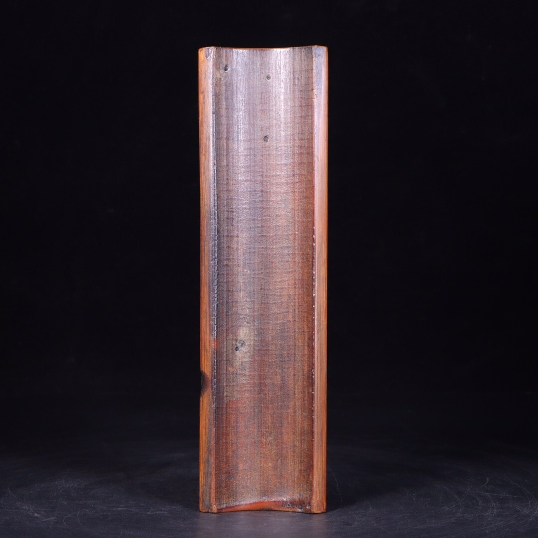 【瓏】老竹彫 花卉詩文 臂擱 趙昌苺銘 時代物 手彫り 文房具 書道具 置物 擺件 古美術 骨董品 蔵出