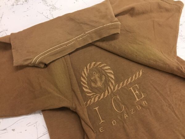 FRANCE フランス Nice ニース コートダジュール マリン 刺繍 レトロ スーベニア 半袖Tシャツ メンズ コットン100% M 茶色