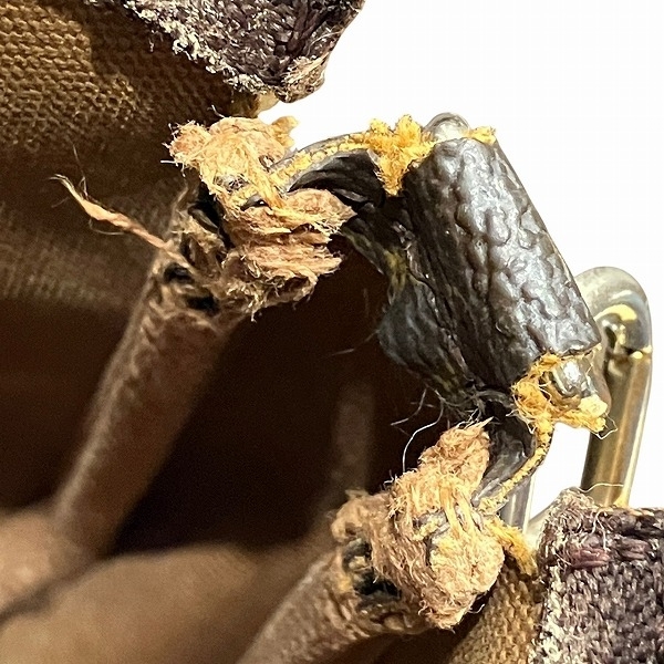 【ブランド】ルイヴィトン 【ライン】モノグラム 【商品名】ポシェットアクセソワール 【型番】M51980 【シリアル】VI1929 【カラー】ブラウン 【素材】トアル地 【仕様】外側:ポケットなし 内側:ポケットなし 【サイズ】H約13cm×W約21cm×D約4cm 持ち手:約29cm 【付属品】なし 【ランク】C (使用感かなりあり) 【状態】 持ち手:擦れ、焼け、汚れ、大程度有り 外側の状態:擦れ、染み、汚れ、剥がれ、破れ、中程度有り 内側の状態:擦れ、汚れ、裂け、毛羽立ち、中程度有り 金具の状態:擦れ、傷、変色、中程度有り その他コメント:持ち手切れております。 | |