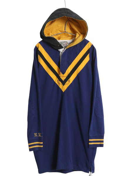 人気ブランドRUGBY RALPH LAURENのラガーシャツワンピースです。 ラルフローレンの伝統やスピリットを受け継ぎ 若い世代向けに展開され人気のあった 【RUGBY】 現在は生産されていない入手困難なラインの商品 素材は、100% COTTON (コットン) しっかりとした厚手のヘビーウェイト、ラガーシャツ素材を使用 3ボタンの前立て、比翼仕様 ボタンは、ラグビーの競技用でも使用される本格的なゴムボタン 前立て、ボタンエンド、サイドスリットに補強 肩回り、フード内側には、生地を2重にしたしっかりとしたキルティング補強 同様のエルボーパッチ付き 裾は、ドローコードで絞れる仕様 右袖先にオールドイングリッシュのフォントのロゴ刺繍入り コーディネートのアクセントになるブルーに イエロー × ブラック のVライン切替 ワンピースに ラガーシャツ・フードパーカー の要素を取り入れた 細部までこだわりを感じるグッドデザイン 丁寧な仕立て、高級感のあるルックス シルエットの美しさは言うまでもありません こういった商品はいつでも手に入る物ではありません ラルフローレンらしいスタイリッシュさもある商品です |