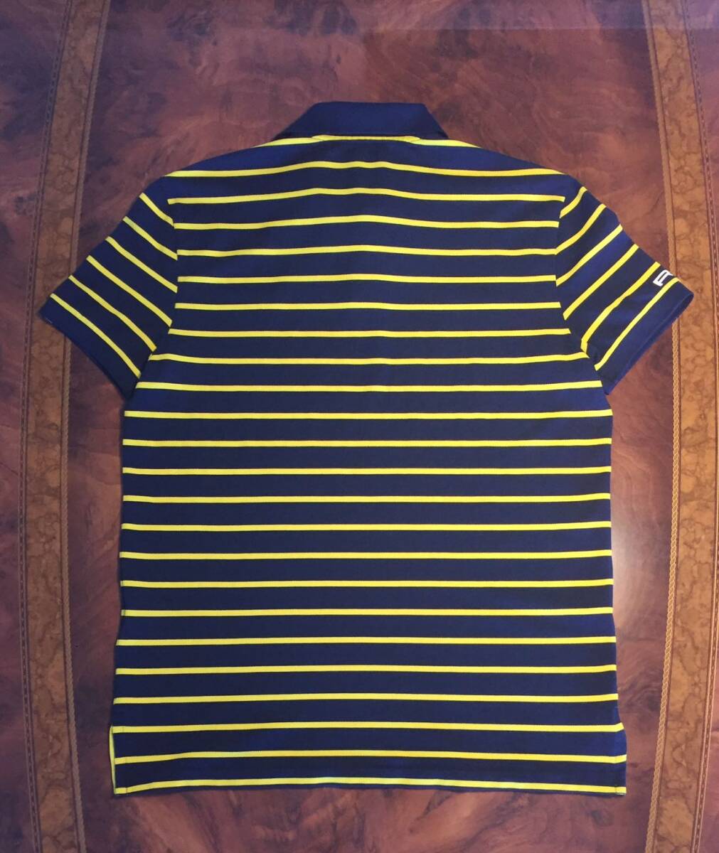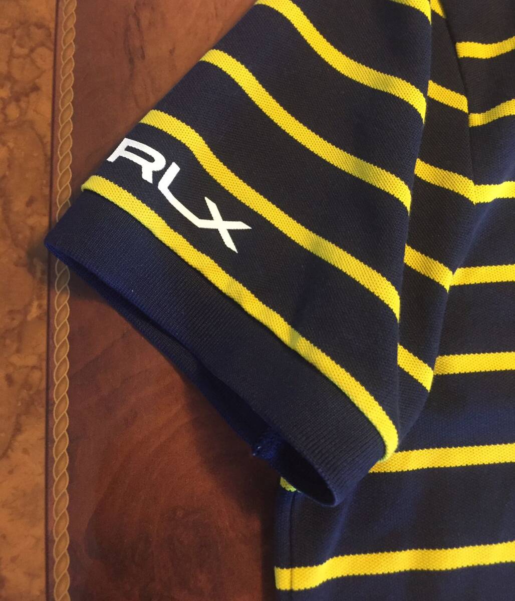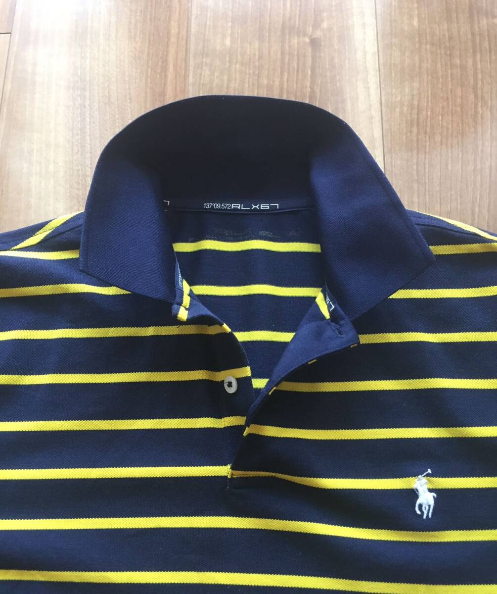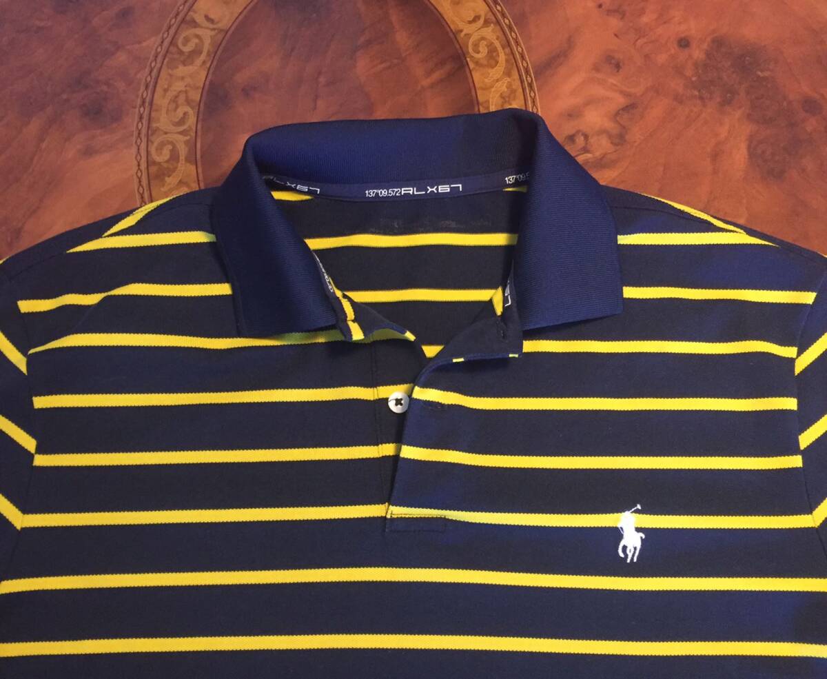 美品 RLX67 Ralph Laurenラルフローレン・ポロシャツ・L・ボーダー柄・ネービー×イェロー・送料230円~