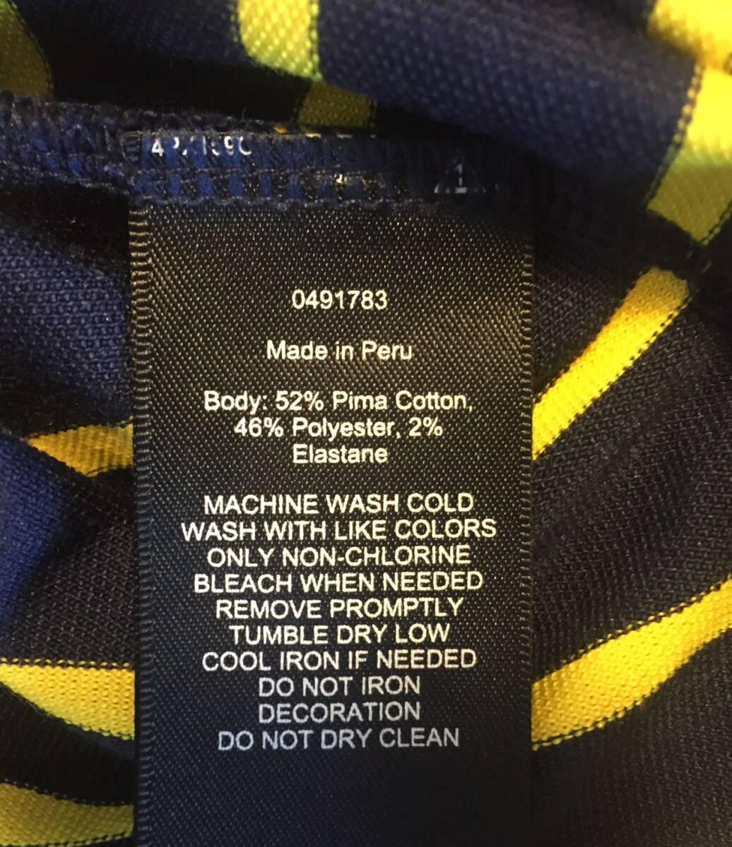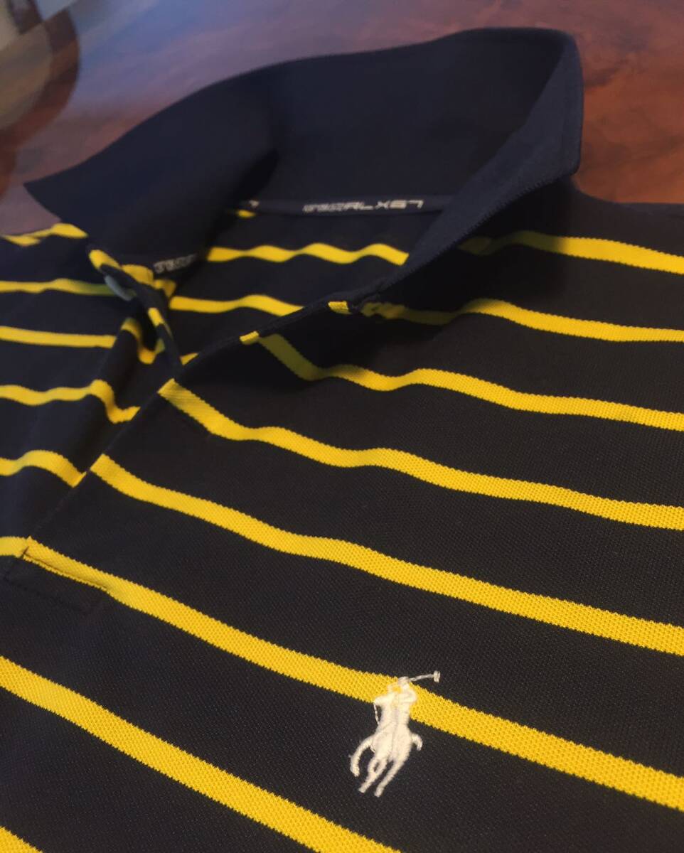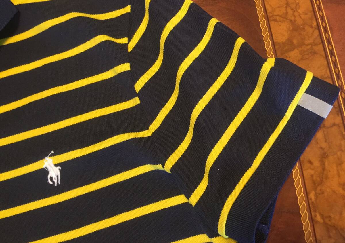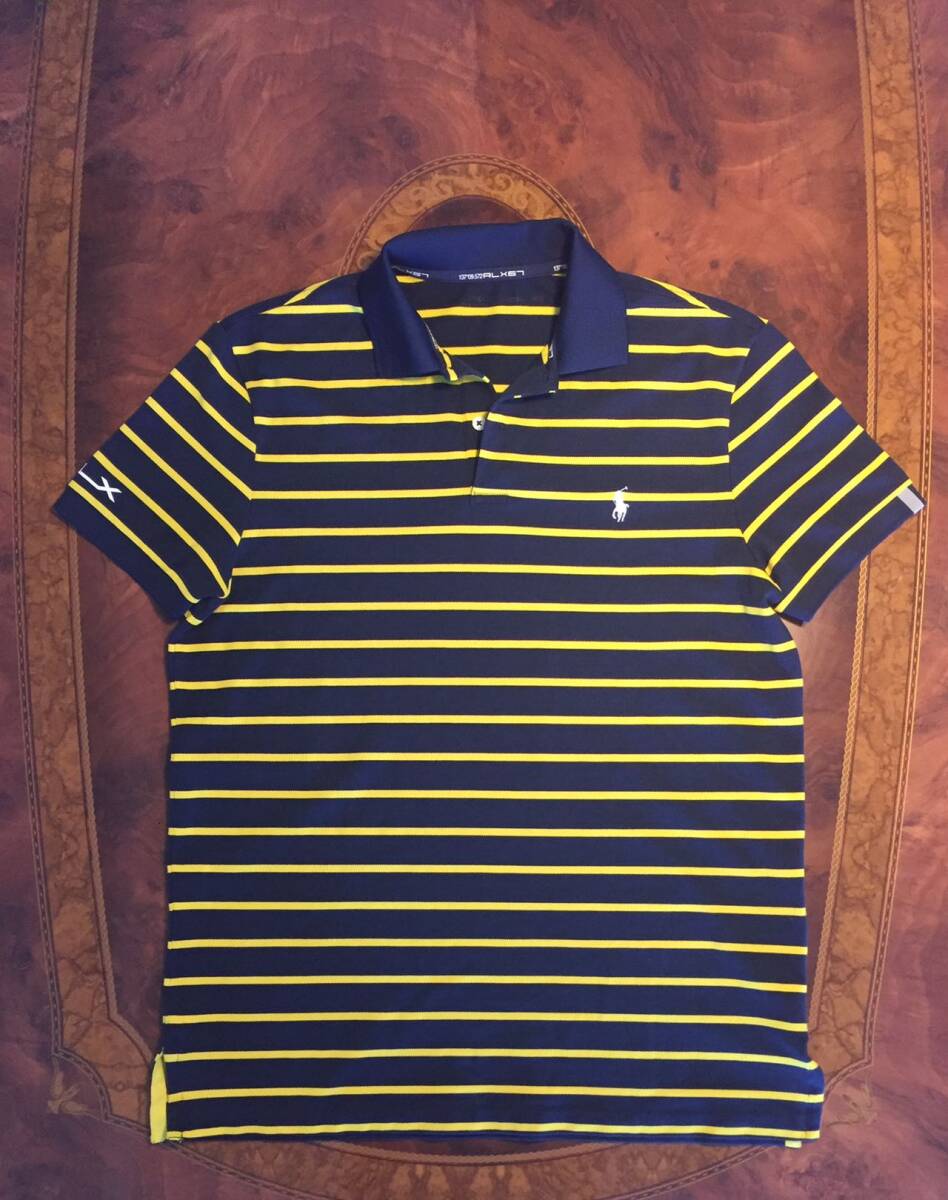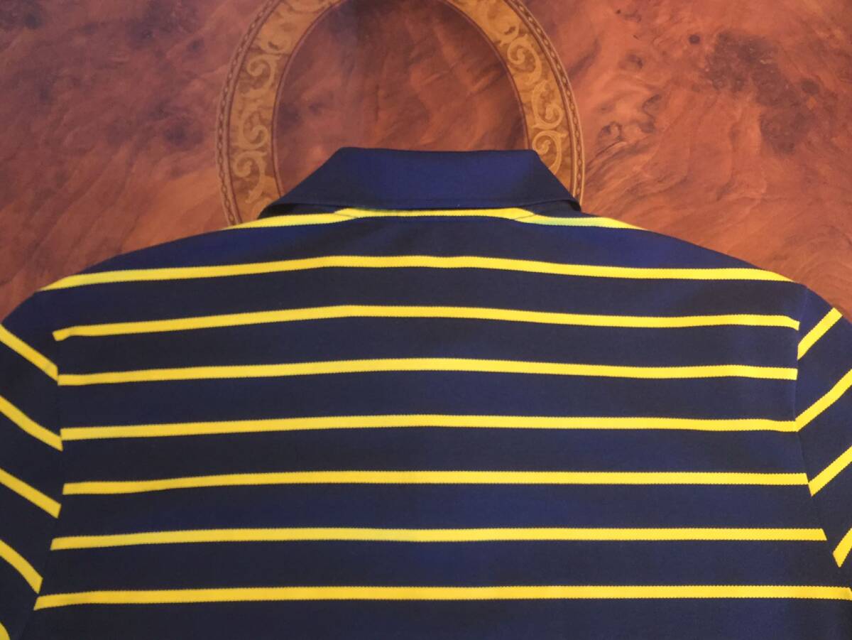 美品 RLX67 Ralph Laurenラルフローレン・ポロシャツ・L・ボーダー柄・ネービー×イェロー・送料230円~