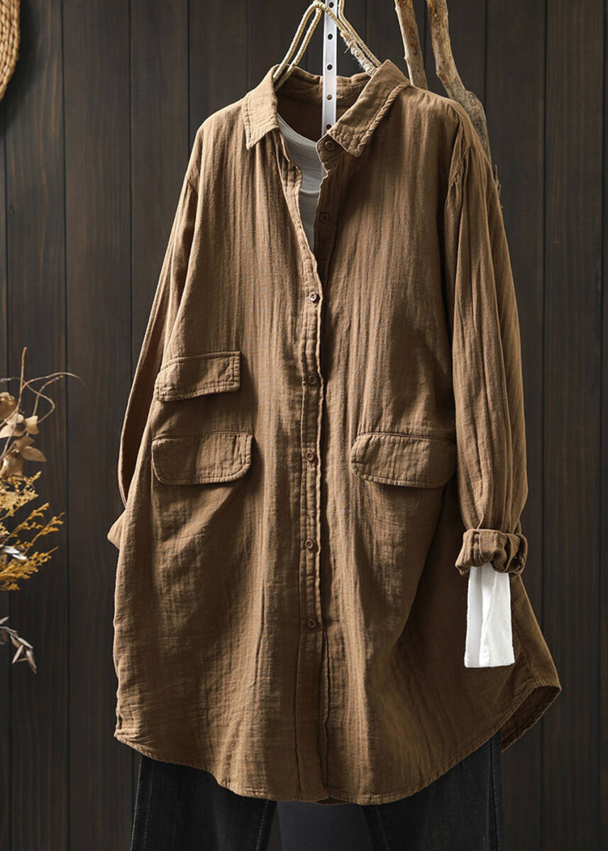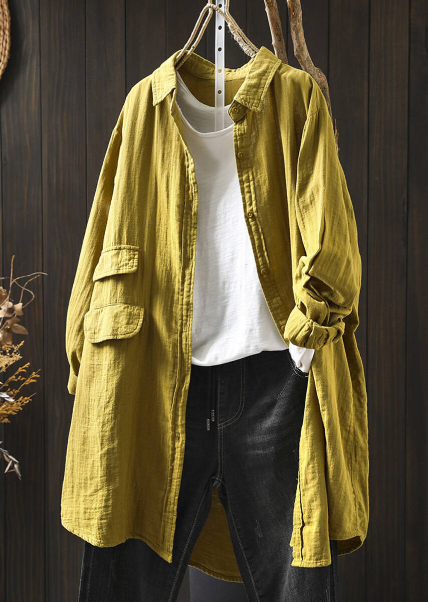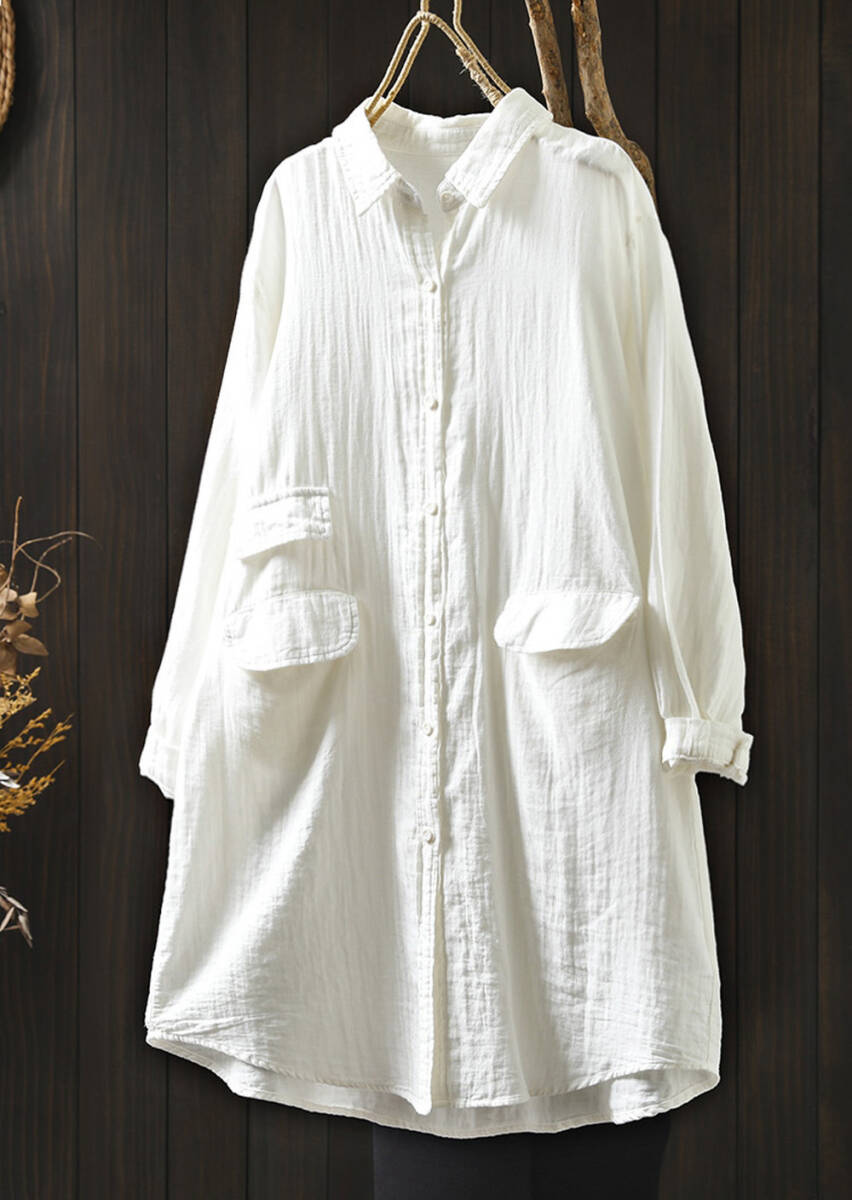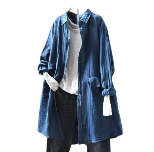 人気品ワイシャツ フリーサイズ カーディガン チュニック トップス 綿100% ナチュラル 通気性肌触り抜群 ダブルガーゼ カラー
