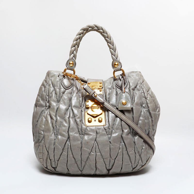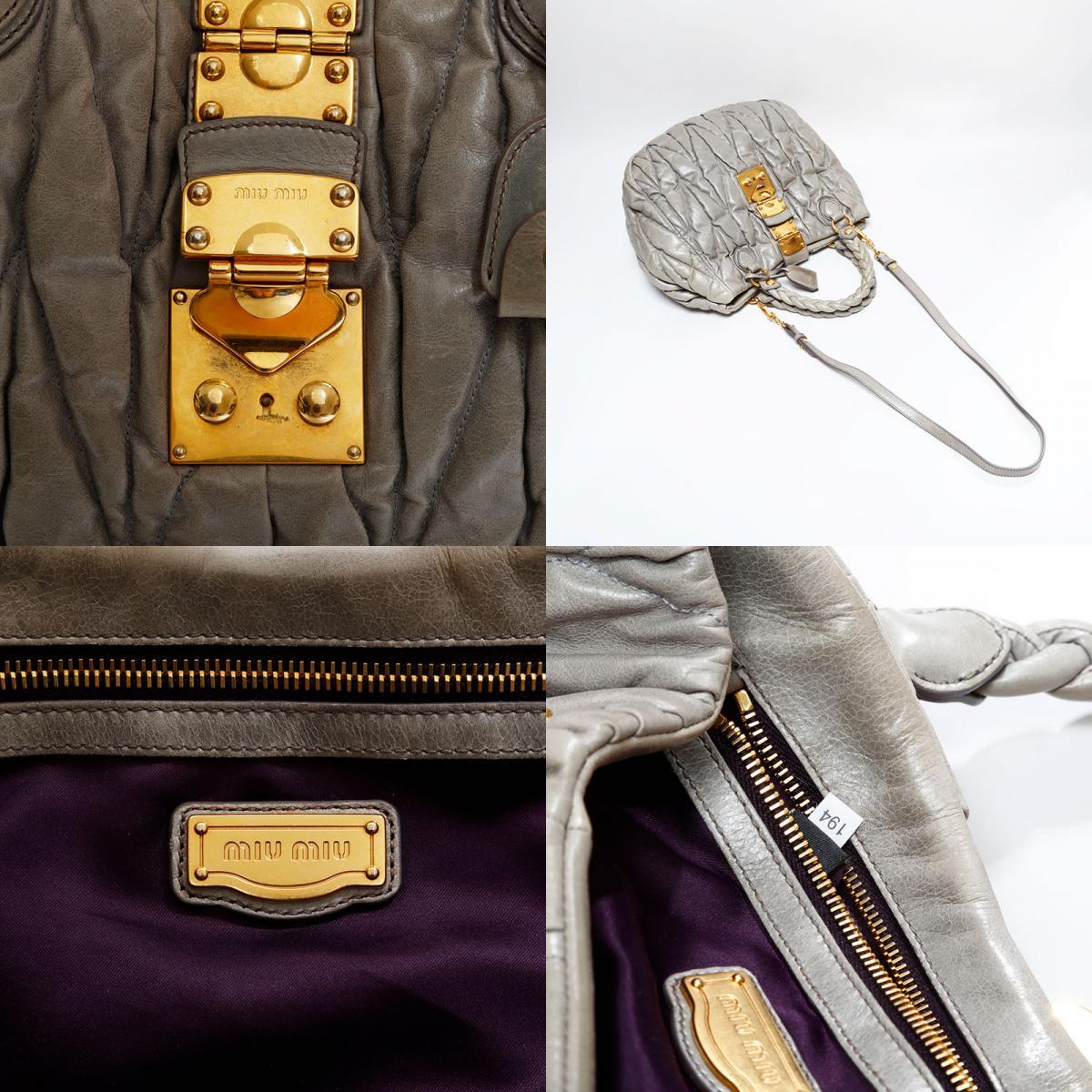 ミュウ ミュウ Miu Miu ハンドバッグ マテラッセ レザー 2way グレー