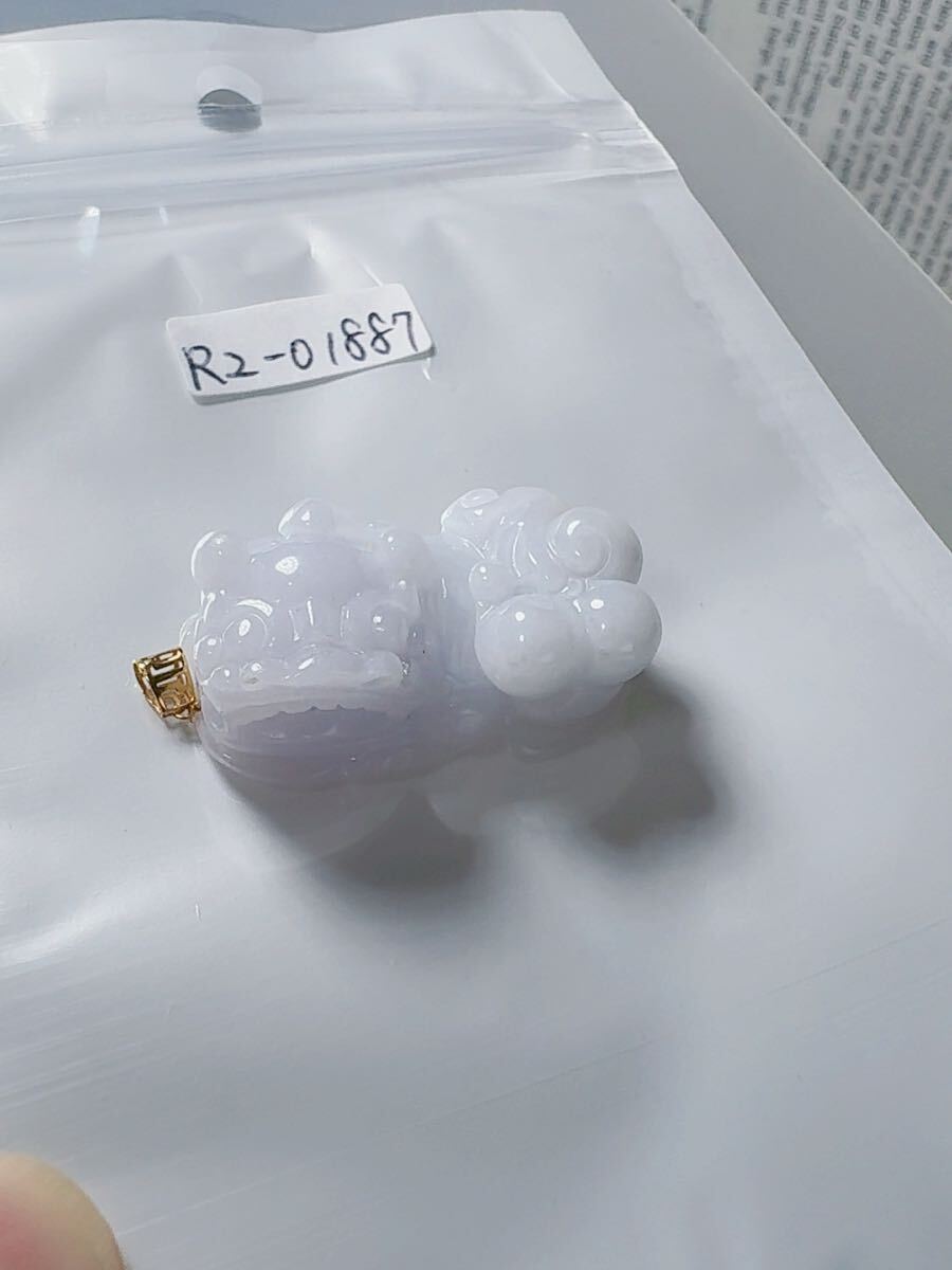 R2-01887天然本翡翠《本物保証》薄ラベンダー翡翠 貔貅ペンダント K18 チェーンS925 金銭運 一点物 希少 縁起物 お守り パワーストーン
