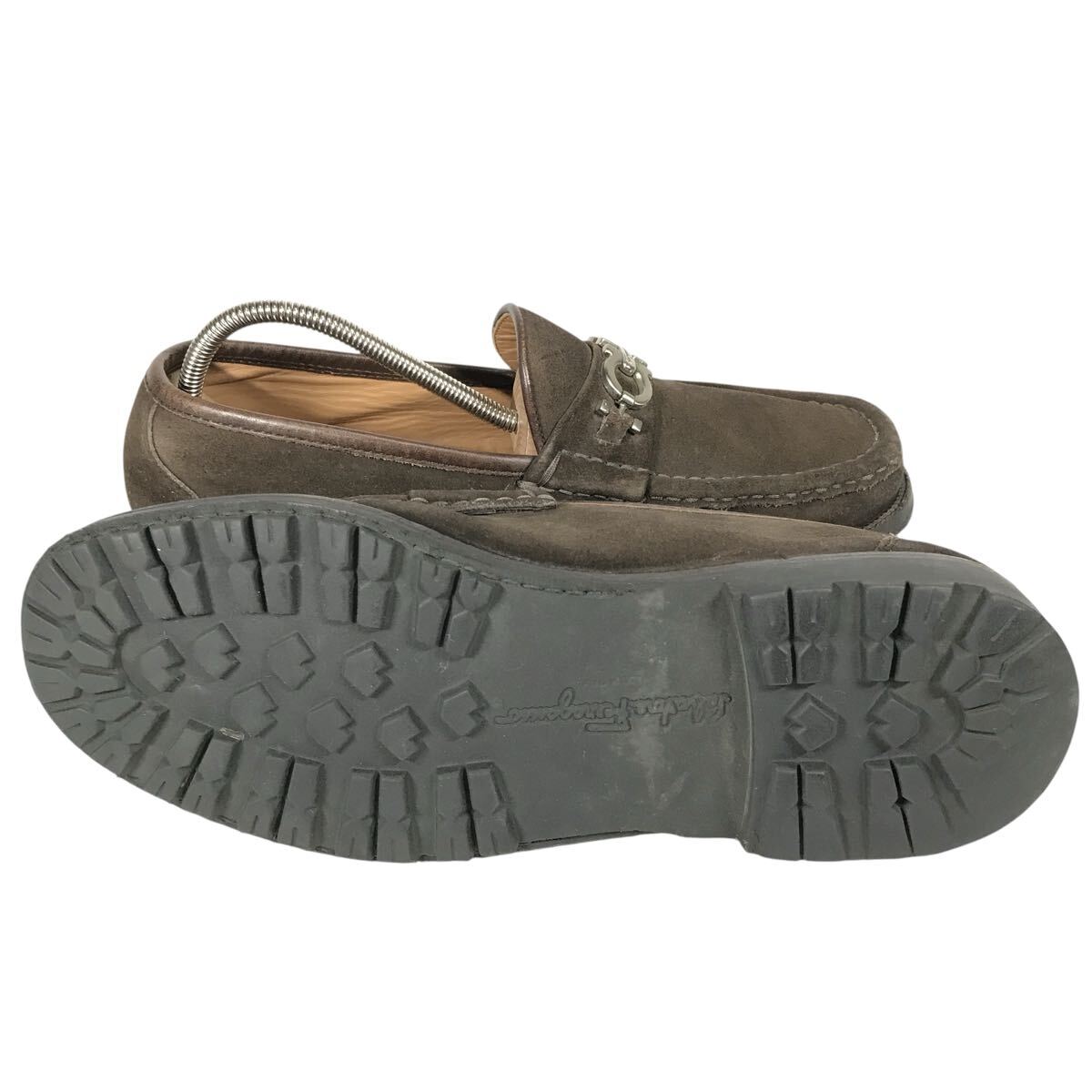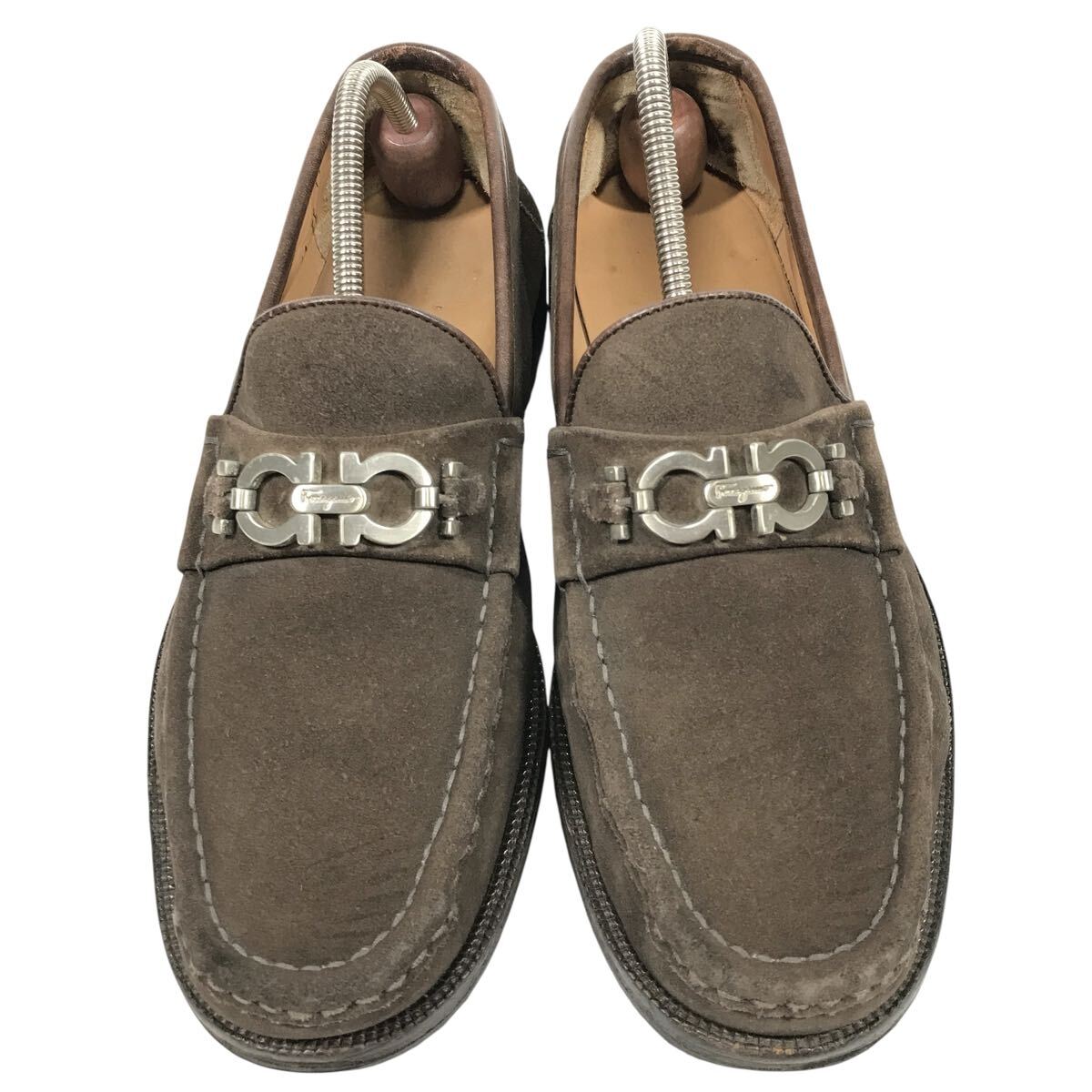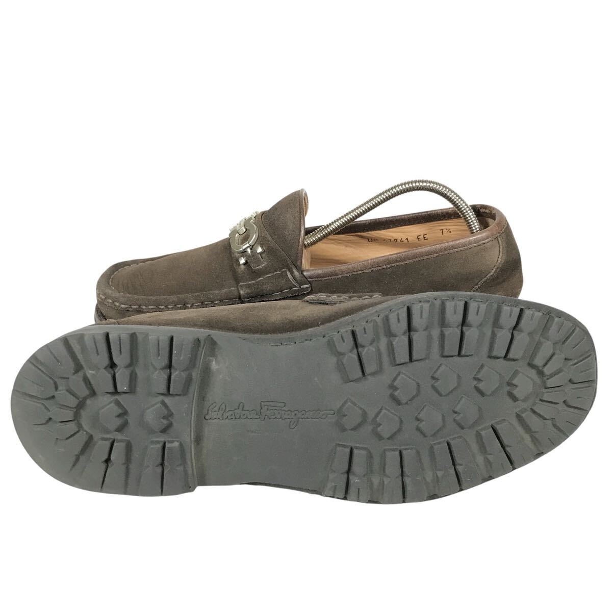 【フェラガモ】本物 Ferragamo 靴 25.5cm ガンチーニ ビットローファー スリッポン ビジネスシューズ スエード 紳士 メンズ 伊製 7 1/2 EE