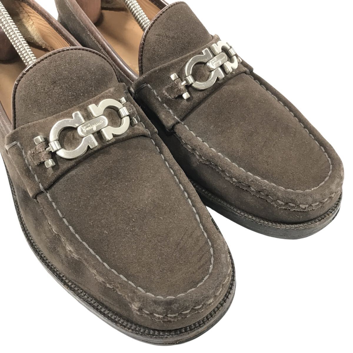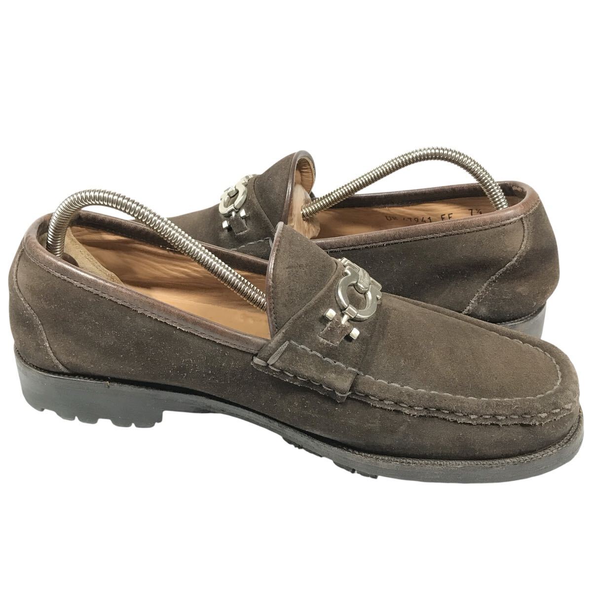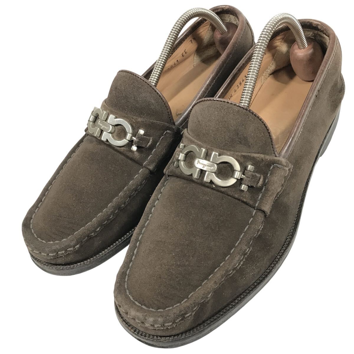 【フェラガモ】本物 Ferragamo 靴 25.5cm ガンチーニ ビットローファー スリッポン ビジネスシューズ スエード 紳士 メンズ 伊製 7 1/2 EE