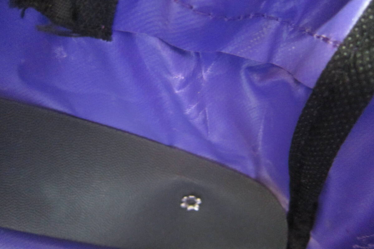 ・キャスター側のボディ縁に破れ有り(写真8)。