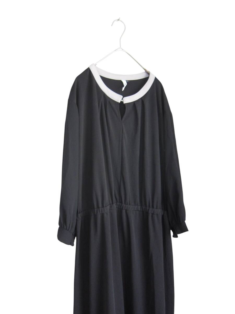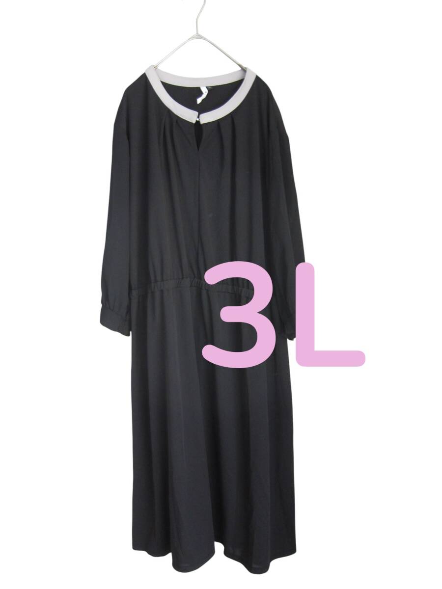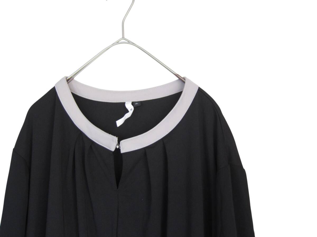 送料無料 S67 美品 【3L】 ~4L着用可 ブラック シフォン チュニック ワンピース 7分袖 大きいサイズ ゆうパケットプラス