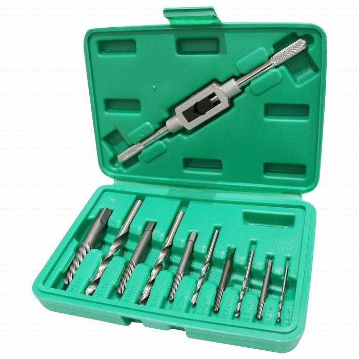 【送料無料】ネジ 外し エキストラクター 逆タップ 折れた なめた 潰れた ボルト 抜き タップハンドル ケース 付き 11種 セット M3-M12