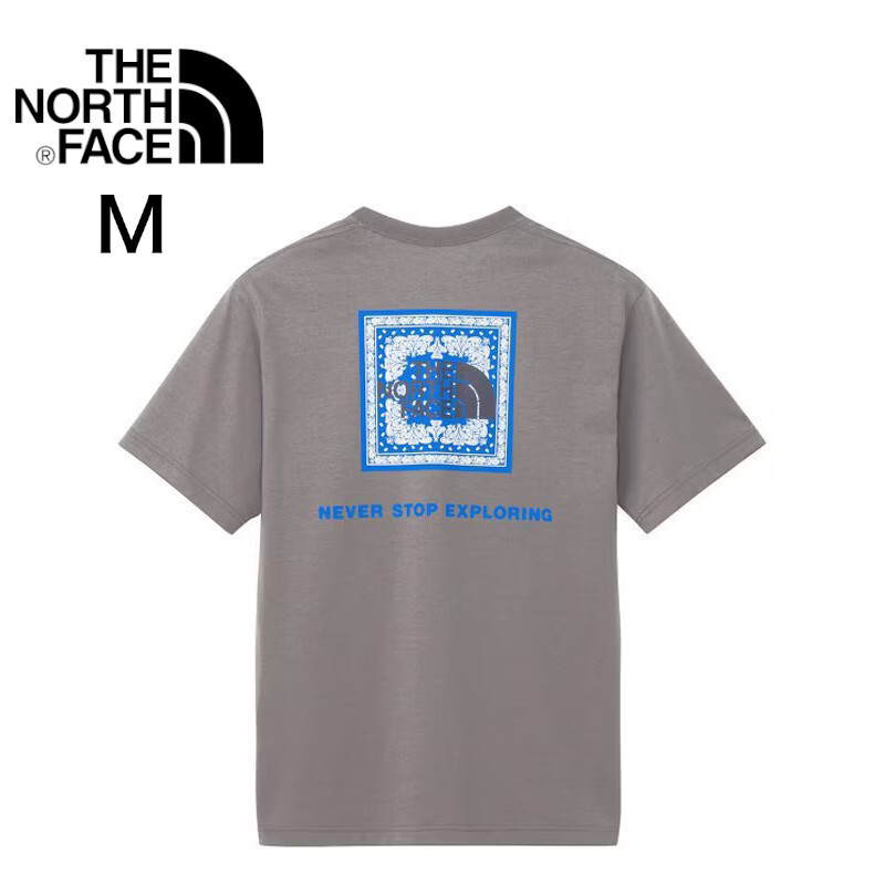 【新品】 Mサイズ THE NORTH FACE ノースフェイス S/S バンダナスクエアロゴ Tシャツ NT32446 メンズ レディース 吸汗 速乾 グレー 2
