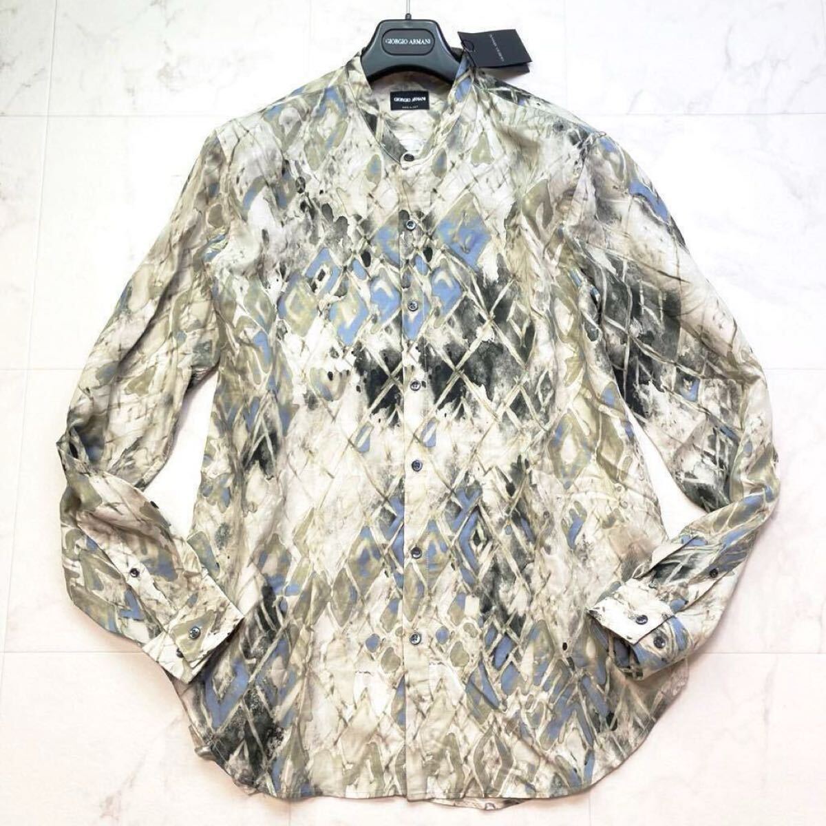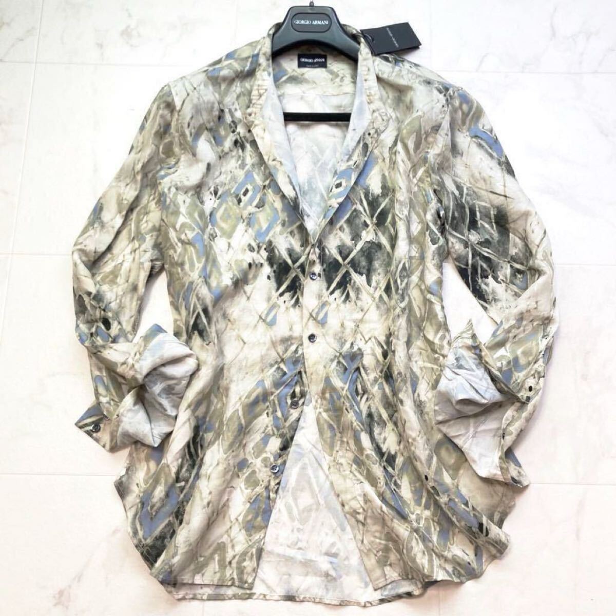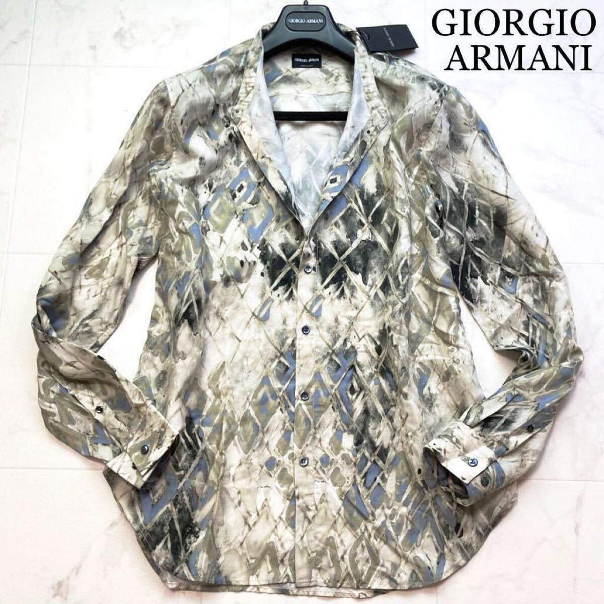 【ほぼ未使用】12.7万!幻の逸品★アルマーニ GIORGIO ARMANI★【シャツ1枚でお洒落が決まる】最高級シャツ 本切羽 艶光沢ジャケット通年M
