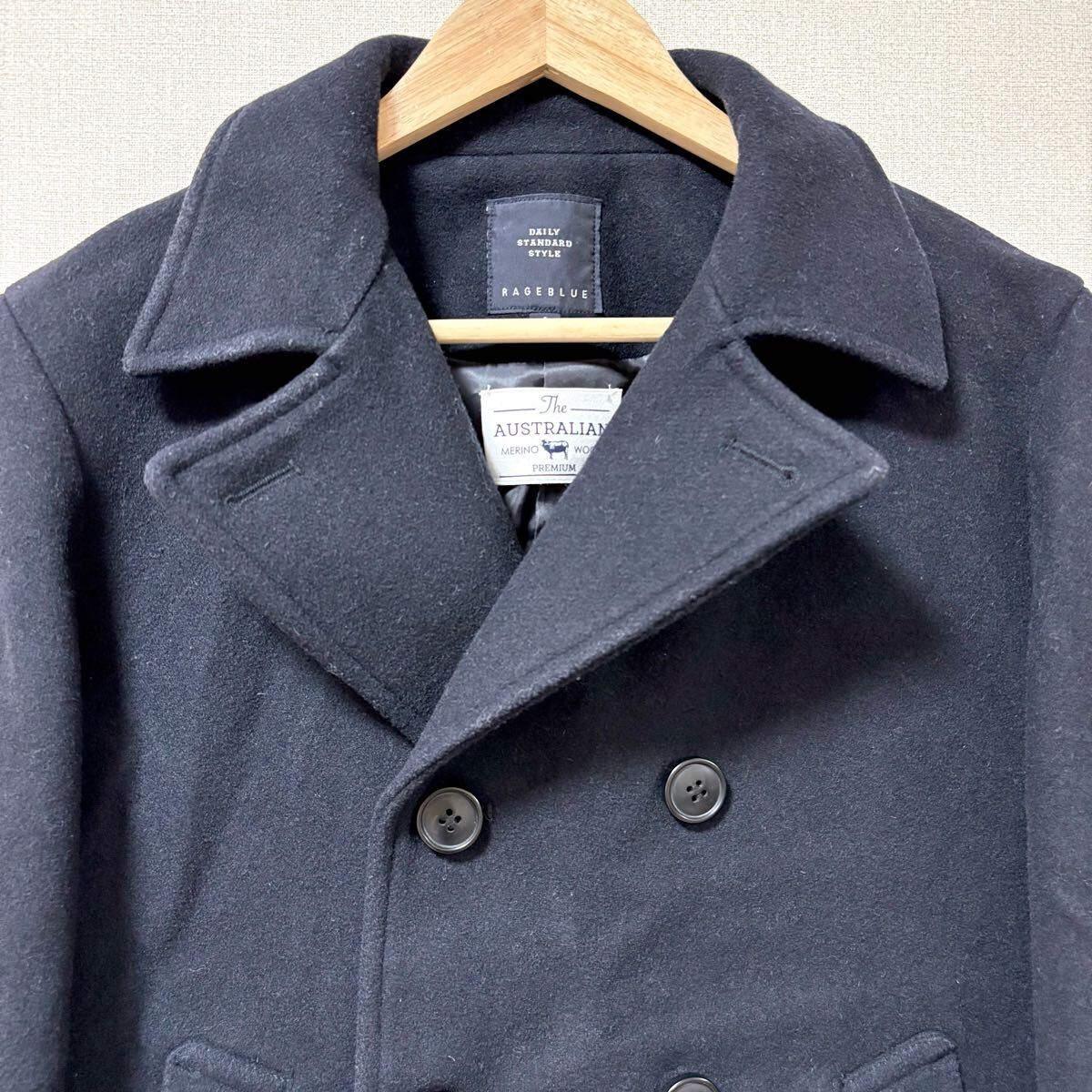 RAGEBLUEのピーコートです。保温性に優れたソフトな質感のメリノウール素材で仕立てられたショート丈のアウターになります。通勤・通学にぴったりなきちんと感のあるデザインです◎目立つキズや汚れなどもないのでまだまだお使いいただけると思います^ ^