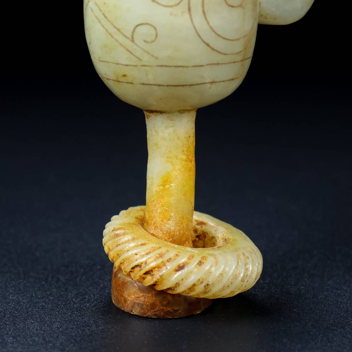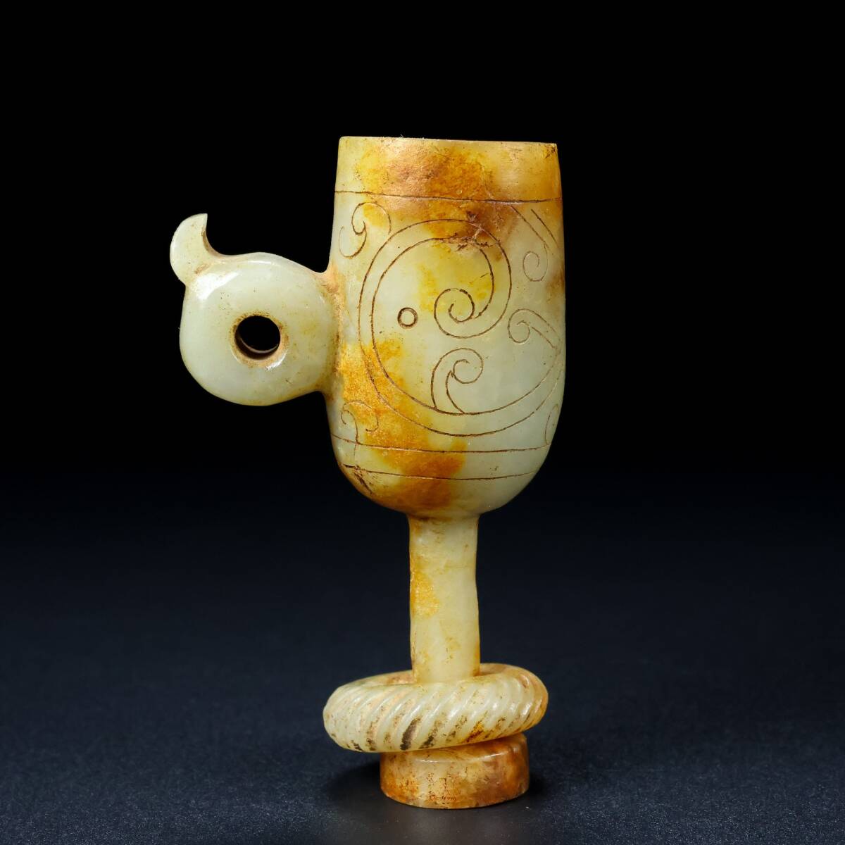 *珍品旧蔵* 清 玉彫 和田老玉 環酒杯一對 極細工 中国古玩 骨董品 古美味 H49