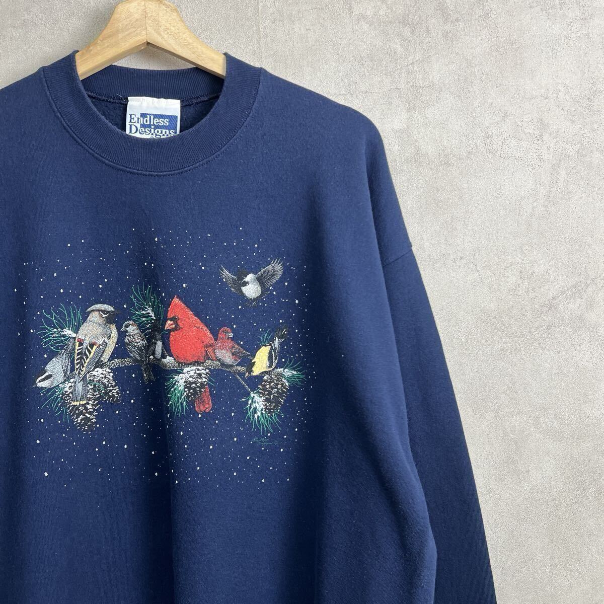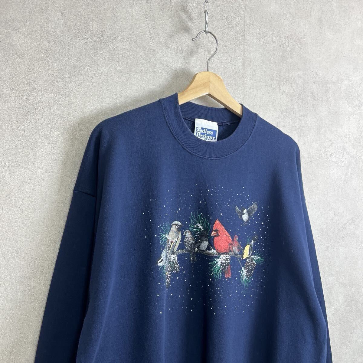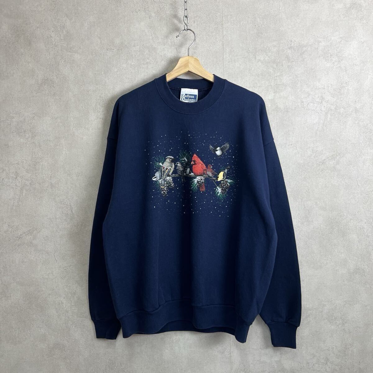 1990年代から2000年代頃のヴィンテージ、ネイビーのプリントスウェットシャツです。