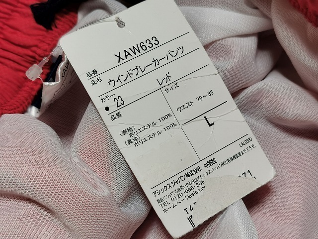 【新品】asics/アシックス ウインドブレーカー パンツ XAW633【L】赤◆運動 野球 サッカー 陸上 スポーツ マラソン ジャージ ズボン