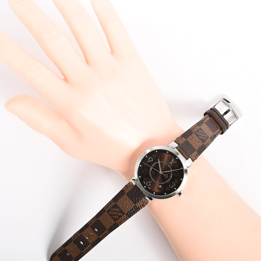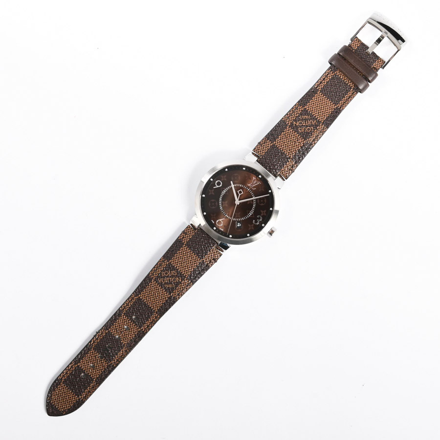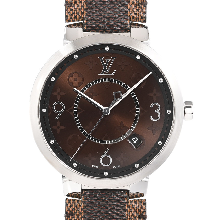 ルイヴィトン タンブール スリム モノグラム マカサーGM 腕時計 QA005Z ブラウン メンズ 中古A品