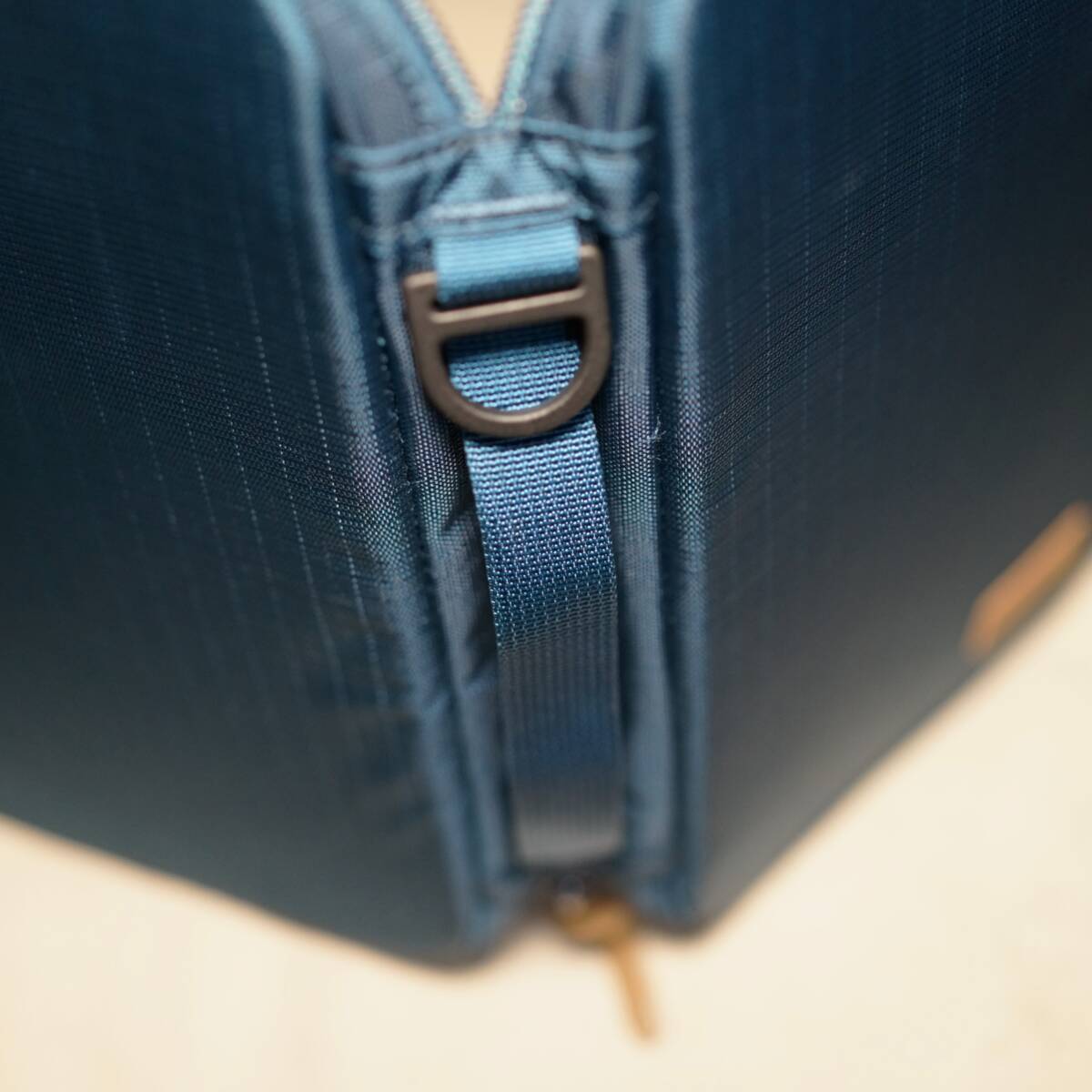木工作業に必要な刃物や定規、ペンなどを収納するためのポーチです。ファスナーを全開し、見開くことで道具の出し入れがしやすく、閉じた際には刃物同士が重なり合わないよう、カバーが配置されています。全体にフォームを入れることで道具を保護し、しっかりとした形状なのでカバンへの出し入れもしやすくなっています。側面にはハンドルとキーホルダー用のDリングを配置しています。