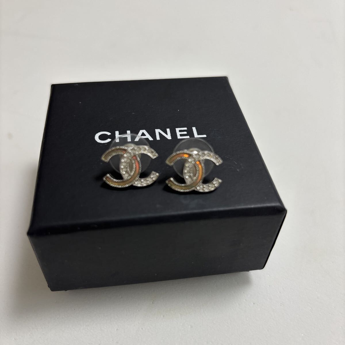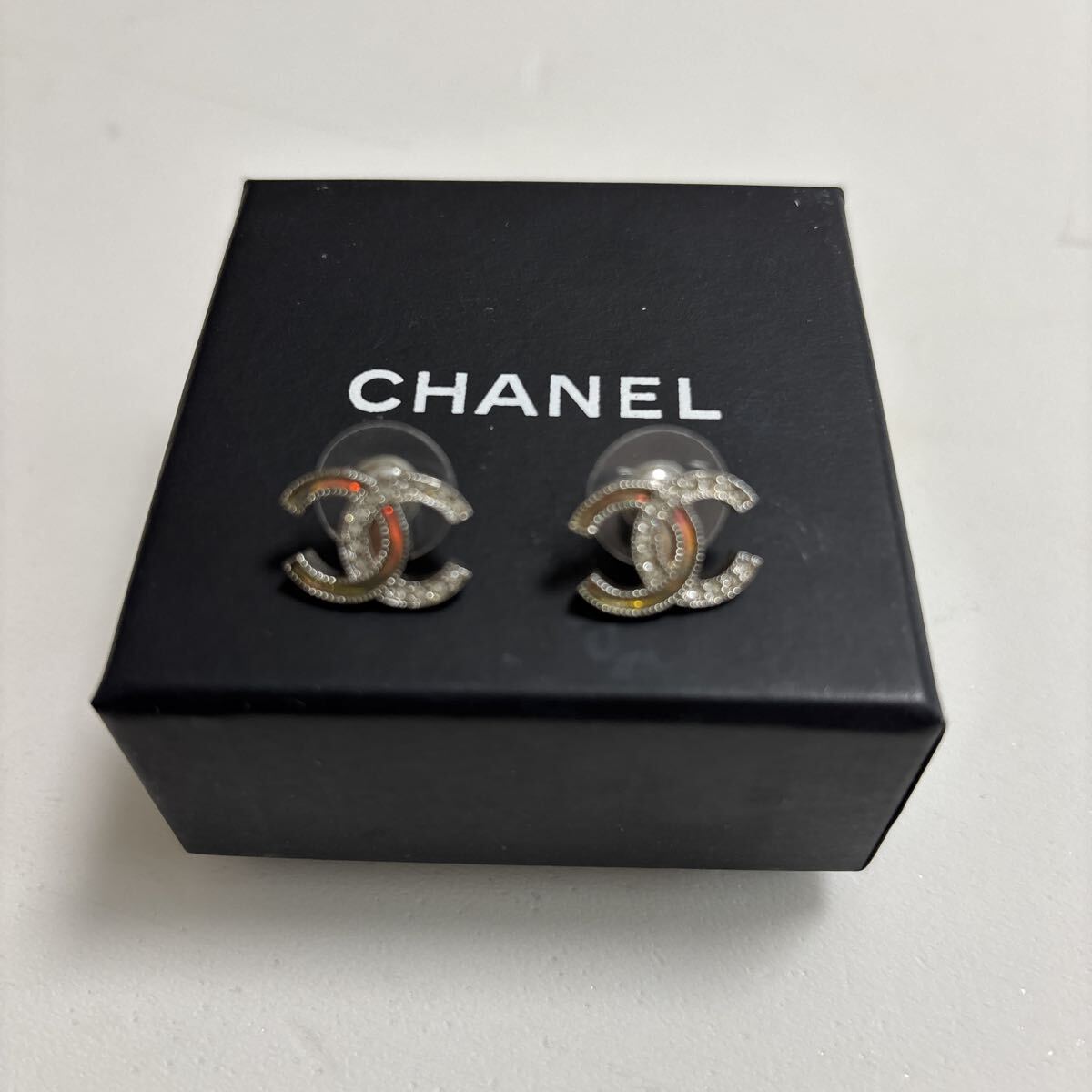 人気のココマークで、片側は、ラインストーンが散りばめられ、片側は、角度によって色が変わるキラキラした可愛いピアスです。