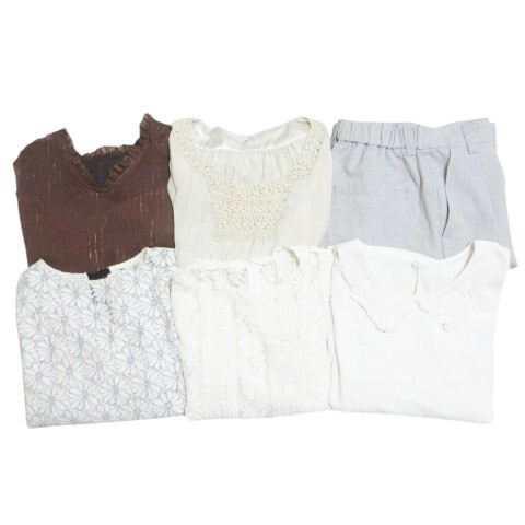 レプシィム ローリーズファーム pour la frime 他 ブラウス パンツ 6点セット おまとめ 半袖 7分袖 長袖 レース ストライプ 無地 白 茶 MMT