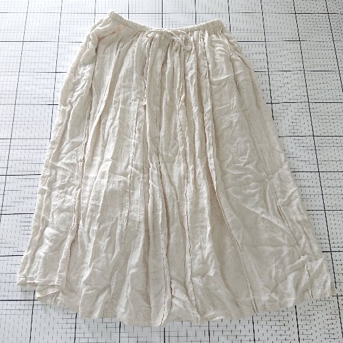 ◇ ⊂ PATTERN TORSO antiqua リネン混 ロング フレア スカート サイズF ベージュ系 レディース E