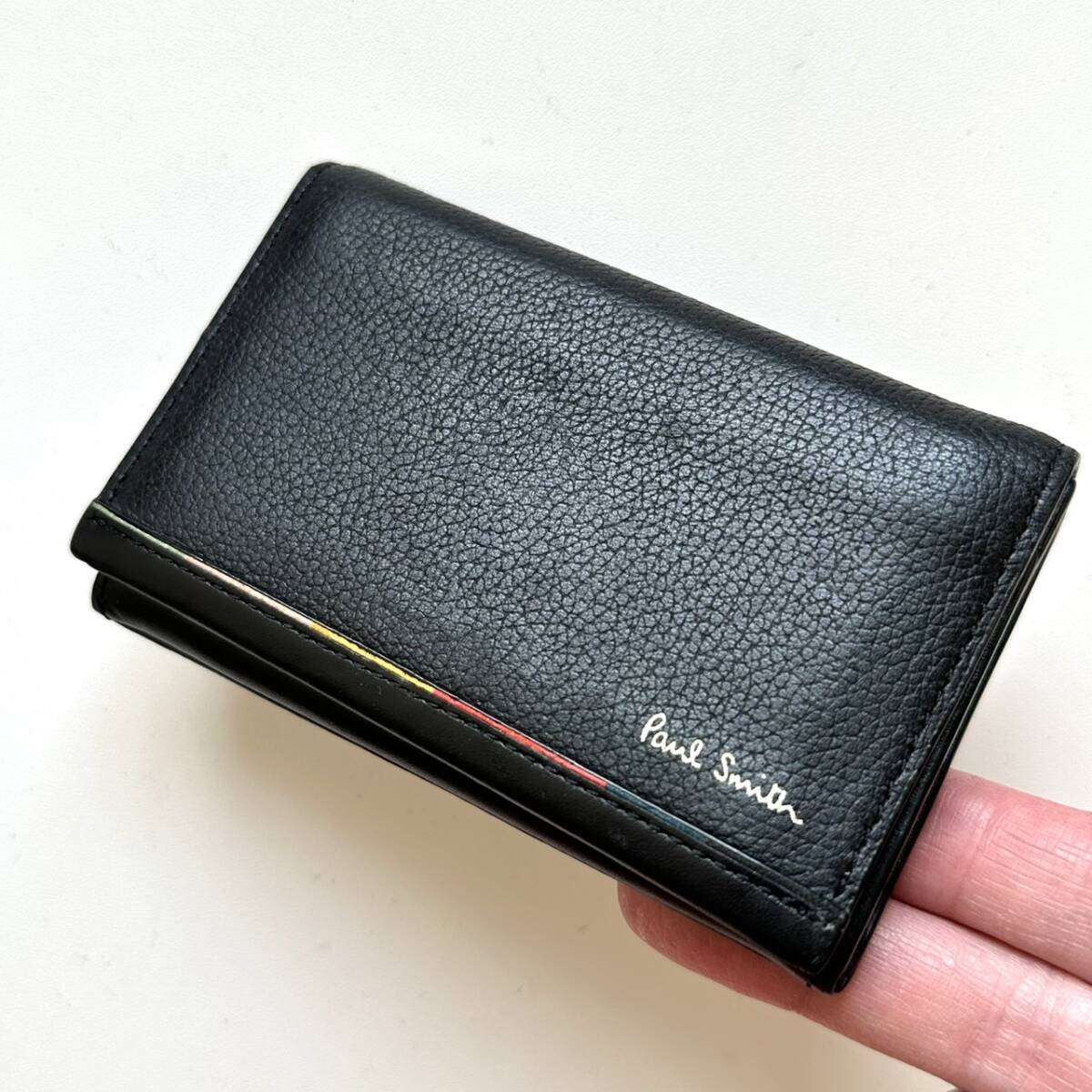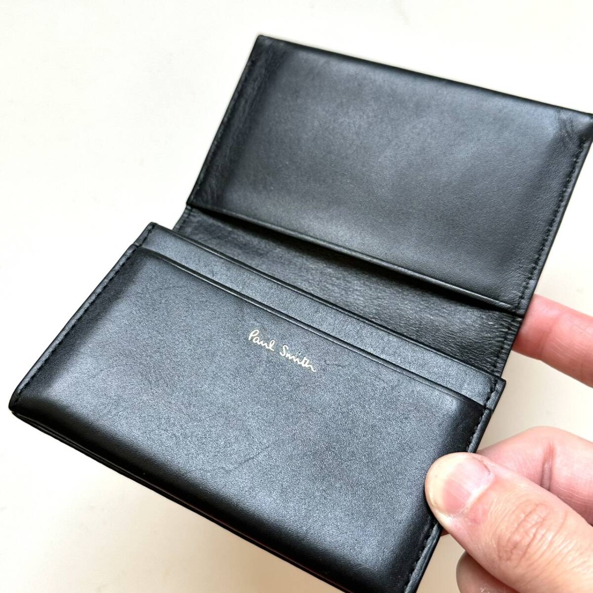 | 商品説明 | ご覧いただき誠にありがとうございます。 ポールスミス Paul Smith 名刺入れ ブラック になります。 色はブラックです。 革は柔らかいです。 外側は使用感が感じられます。 内側は比較的綺麗です。 付属品は箱のみです。 【仕様】 縦7cm、横11cm、厚さ2cm、カード入れ×3 |