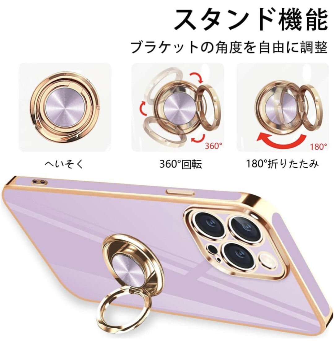 【リング付き&360°回転スタンド機能】后ろに付いたフィンガーリングはもちろんスタンド机能、安定したグリップが特徴です。リングはケースにしっかり固定されていて、縦置き、横置きどちらの角度でも固定できます。滑りにくく持ちやすく、360度回転、180度の角度調節が可能。