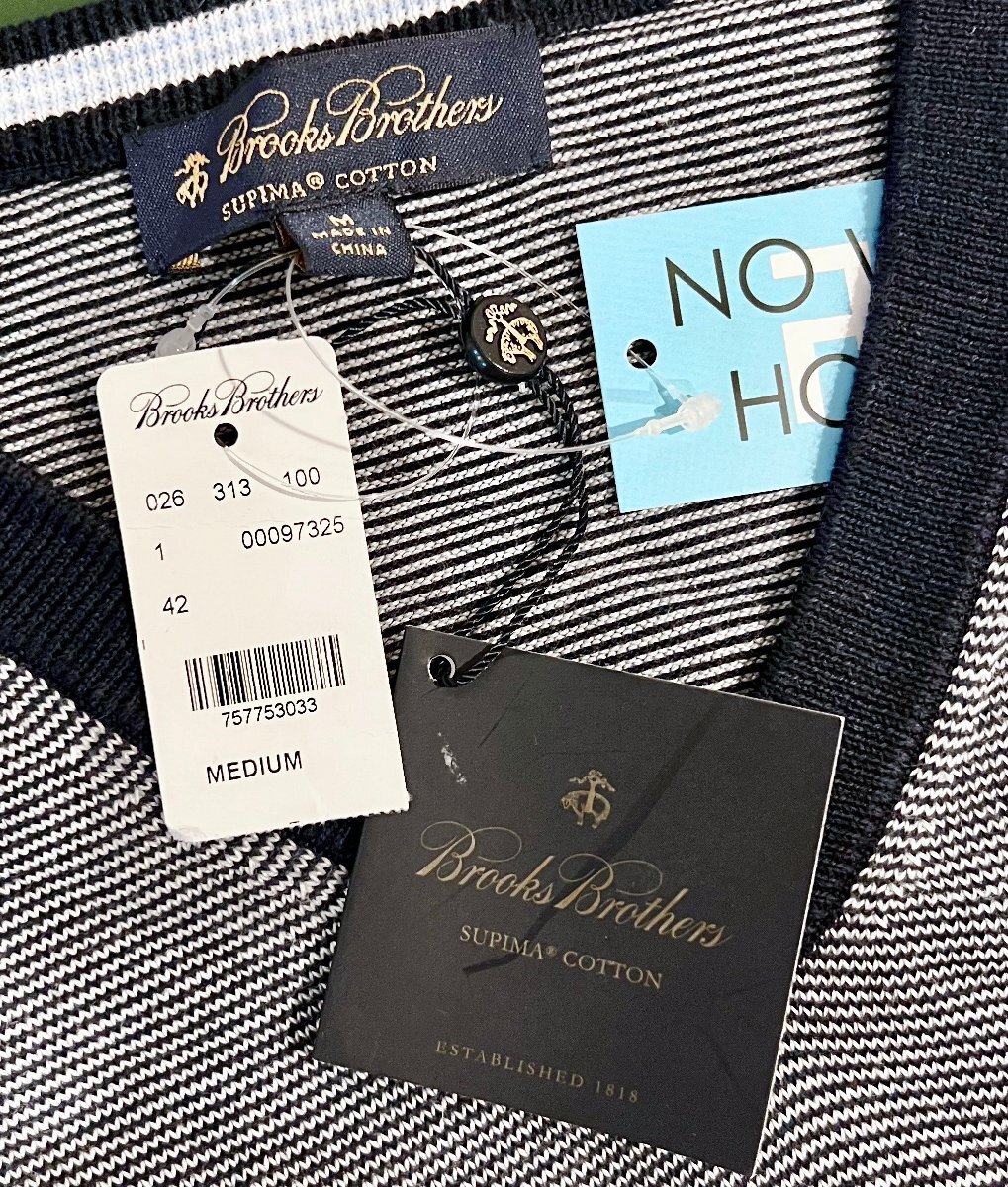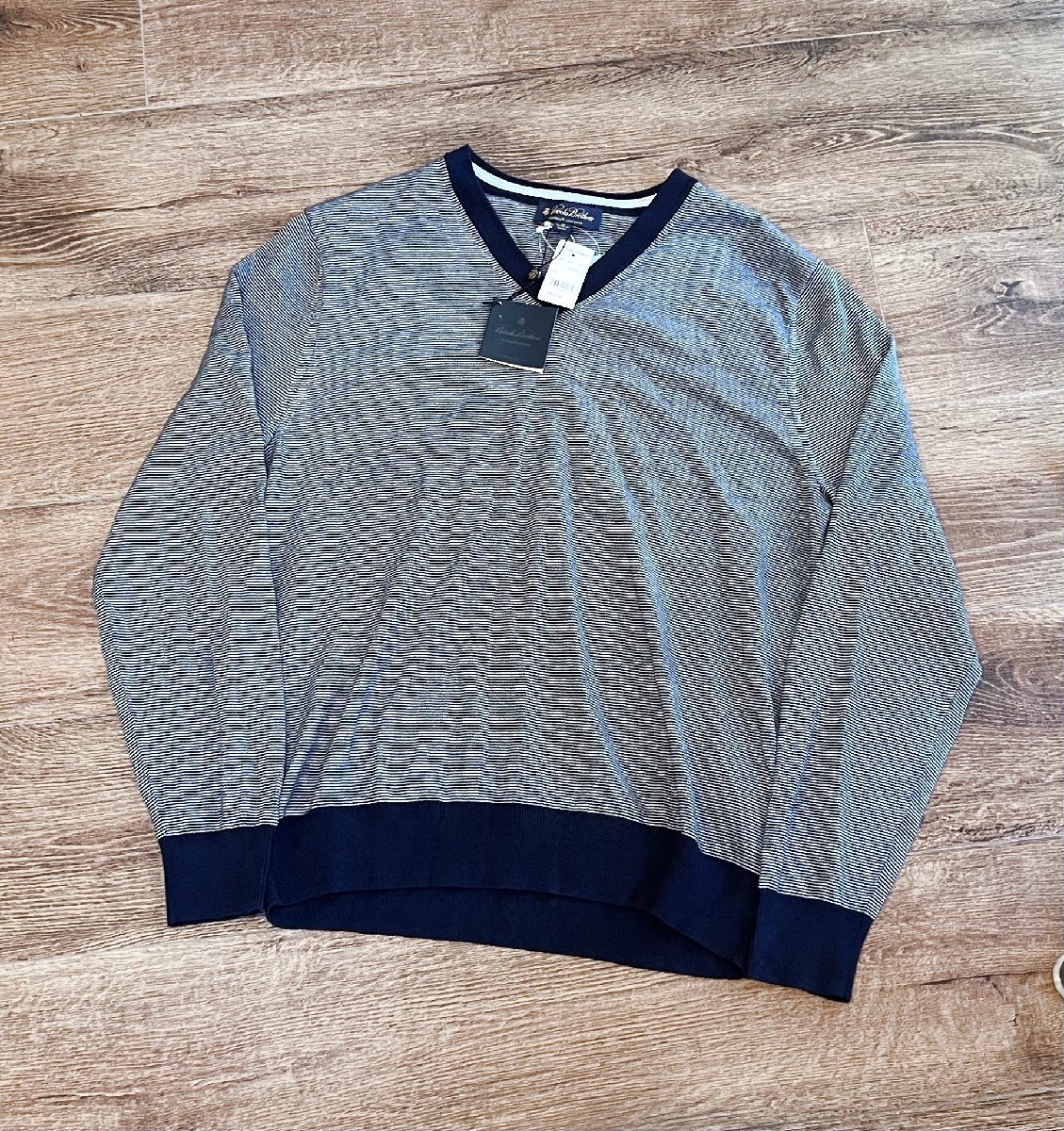 デッドストック 未使用品 ビンテージ Brooks Brothers ブルックスブラザーズ 紺×白ボーダー Vネックセーター M EG1869-12-60-EG27