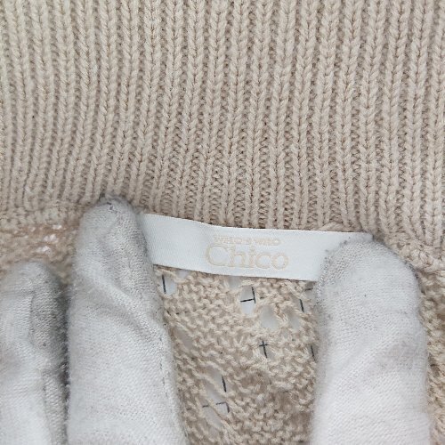 ◇ ⊂ who's who Chico フーズフーチコ 透かし編み ロング丈 フレア ニット スカート サイズF ベージュ系 レディース E