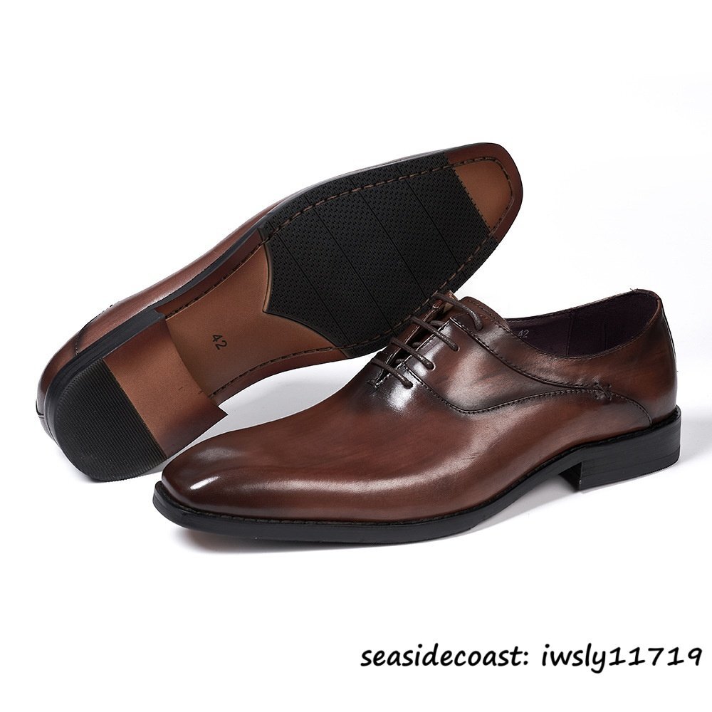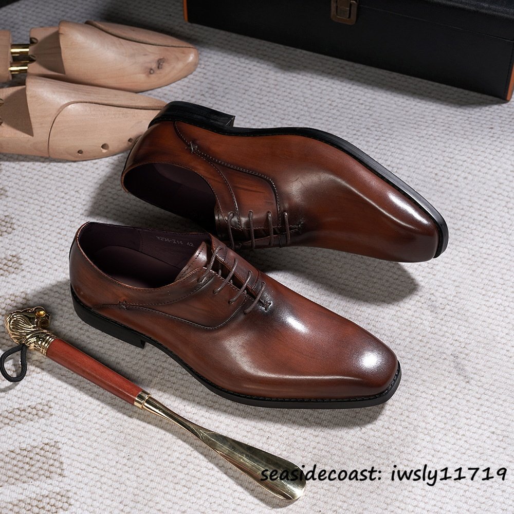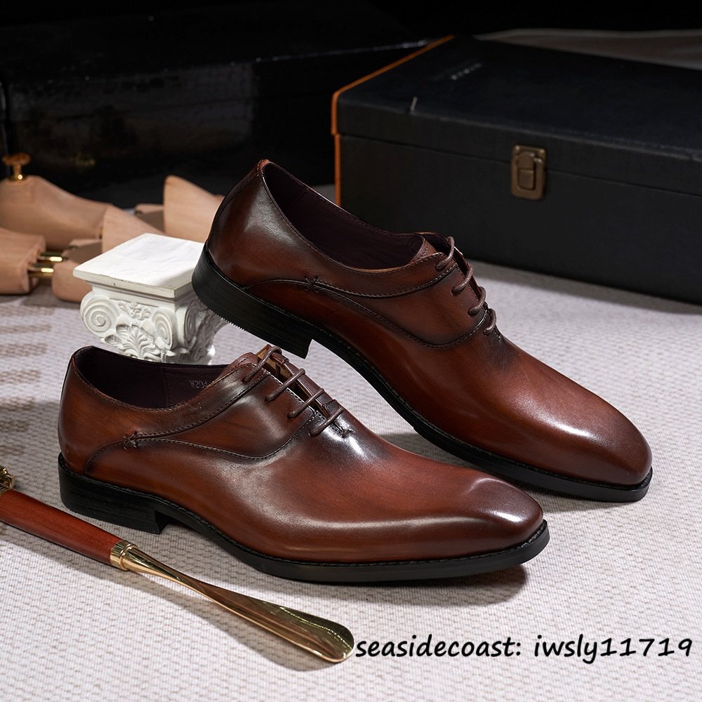 超希少★メンズシューズ 本革 レザーシューズ ビジネスシューズ 職人手作り 紳士靴 革靴 最高級 牛革 フォーマル 結婚式 ブラウン 28.0cm