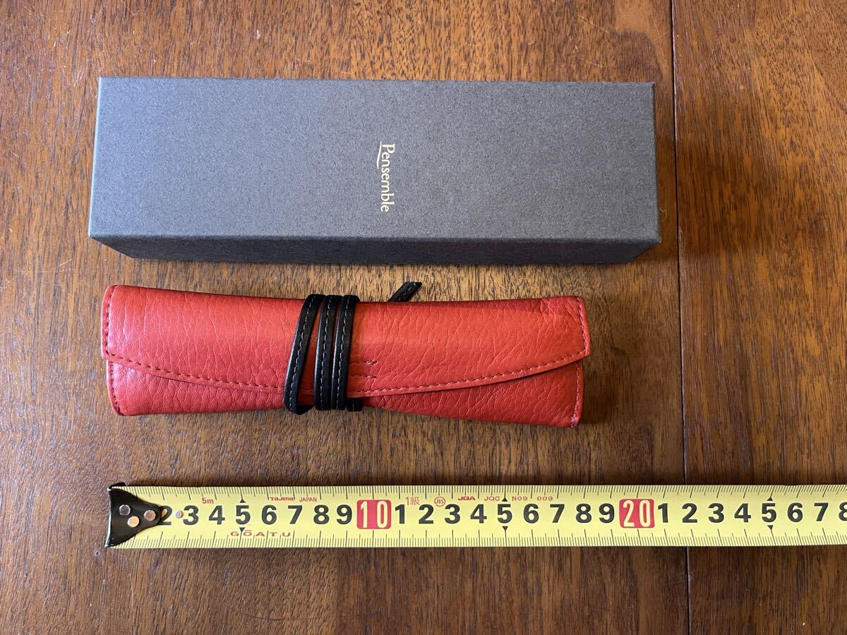 購入後特に持ち出すことなく引き出しにしまっていました。皮もしっとり感がきちんとあります。赤色がとても綺麗です。サイズはロングサイズです。パイロットのカスタム ウルシのような大型万年筆も収納可能です。どうぞ宜しくお願いします。