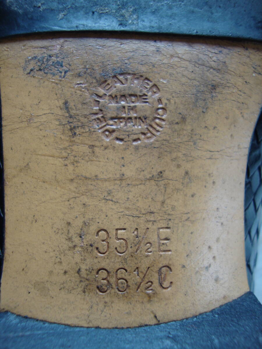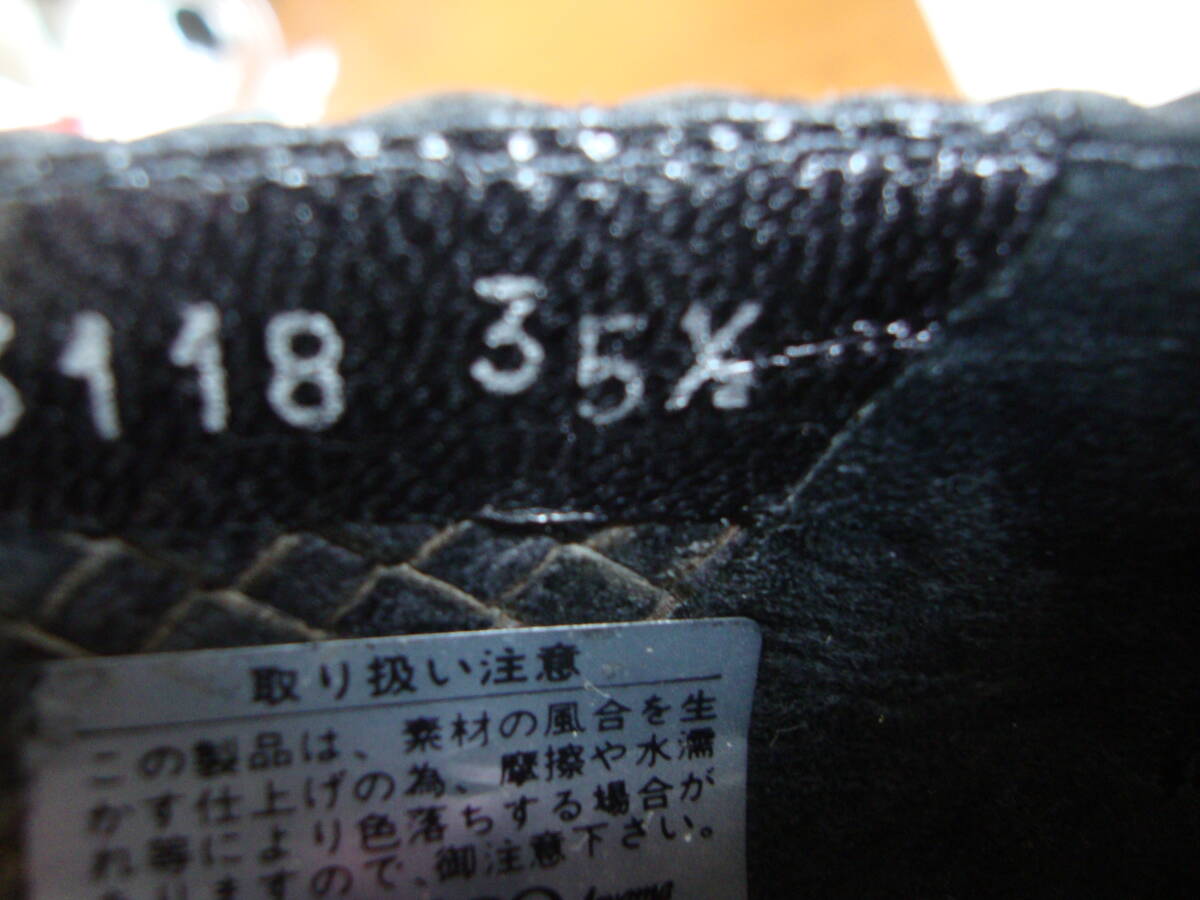 表記サイズは35 1/2E ですが、靴底には36 1/2Cの表記もあり、日本サイズでは22.5~23.5と思われます。