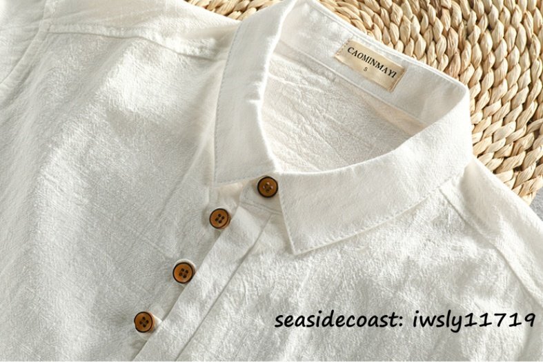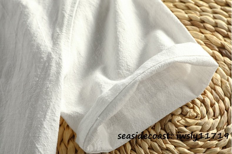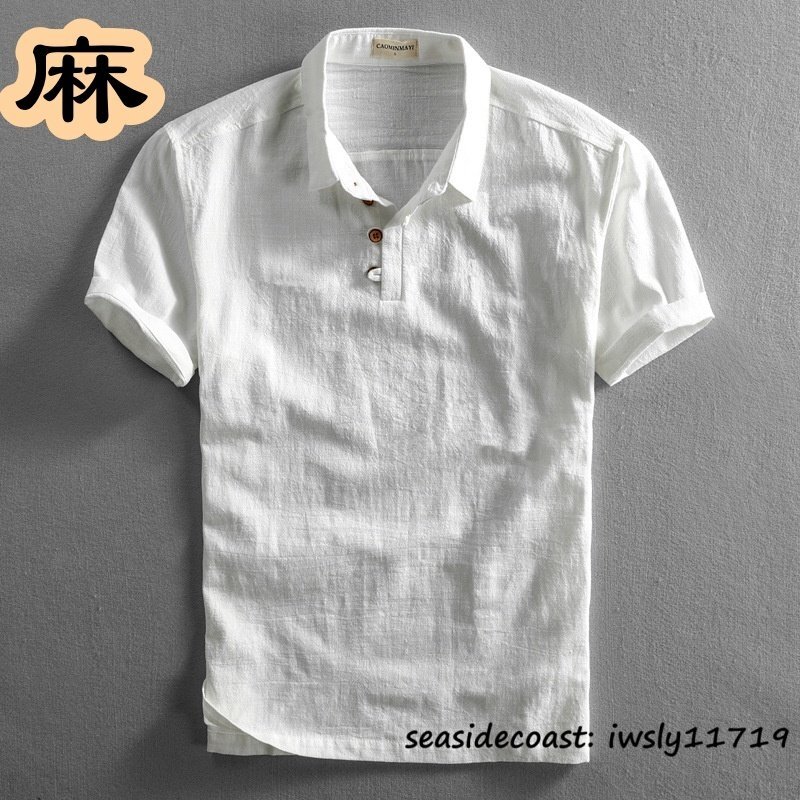 春夏新品 半袖シャツ メンズ リネンシャツ 麻100% スリム Tシャツ カジュアルシャツ ワイシャツ ビジネス 紳士服 清涼感 快適 ホワイト 5XL