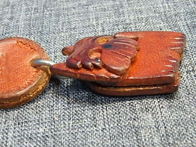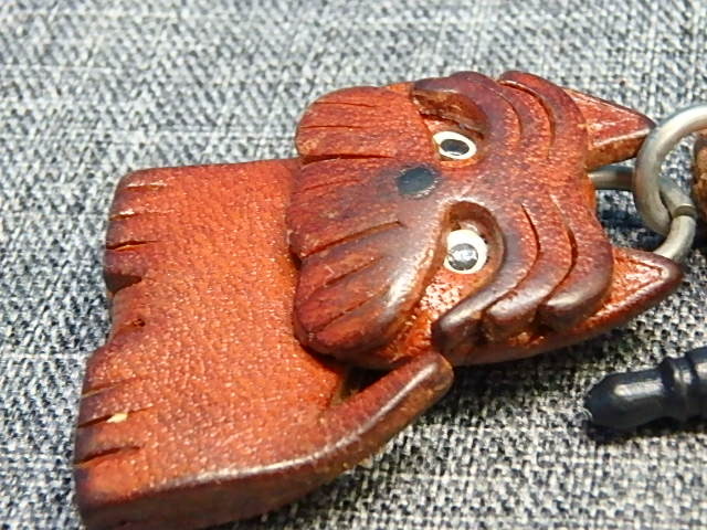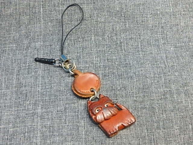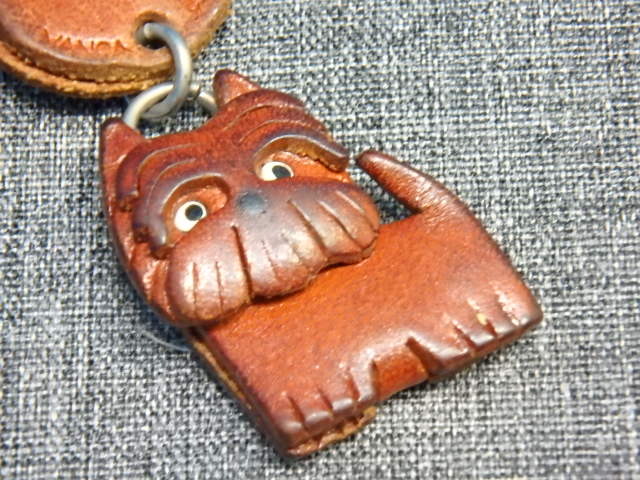 nk14-25-0909-1 VANCA ヨークシャテリア ストラップ キーホルダー 犬 革 中古