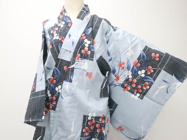 肩当てつきです。 リサイクル商品のため、肩山、袖山に薄ヤケ、裾薄汚れがございますが着用可能なお品です。 地色は 灰水です。 1枚目の画像が近いお色かと思われます。 素材は綿です。 |
