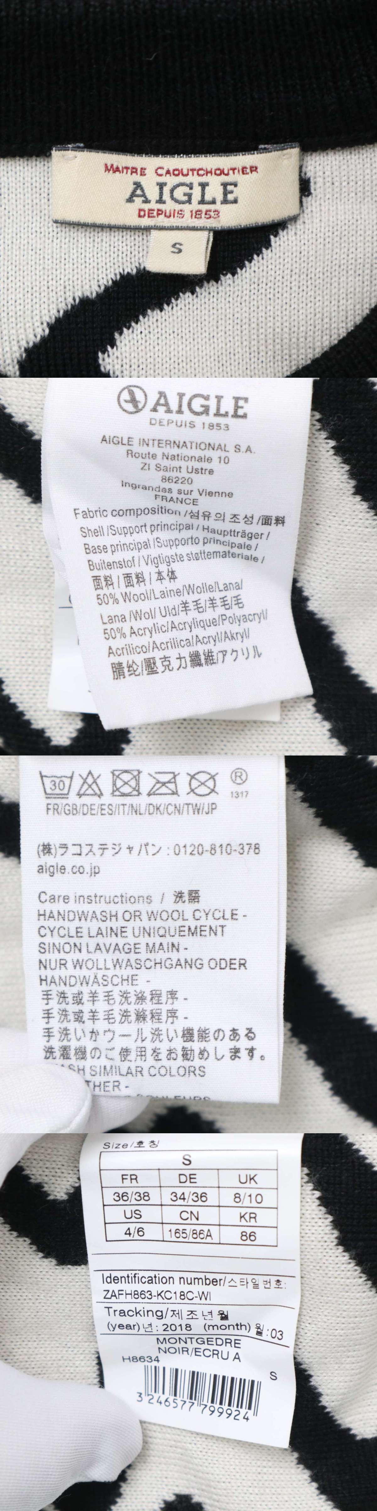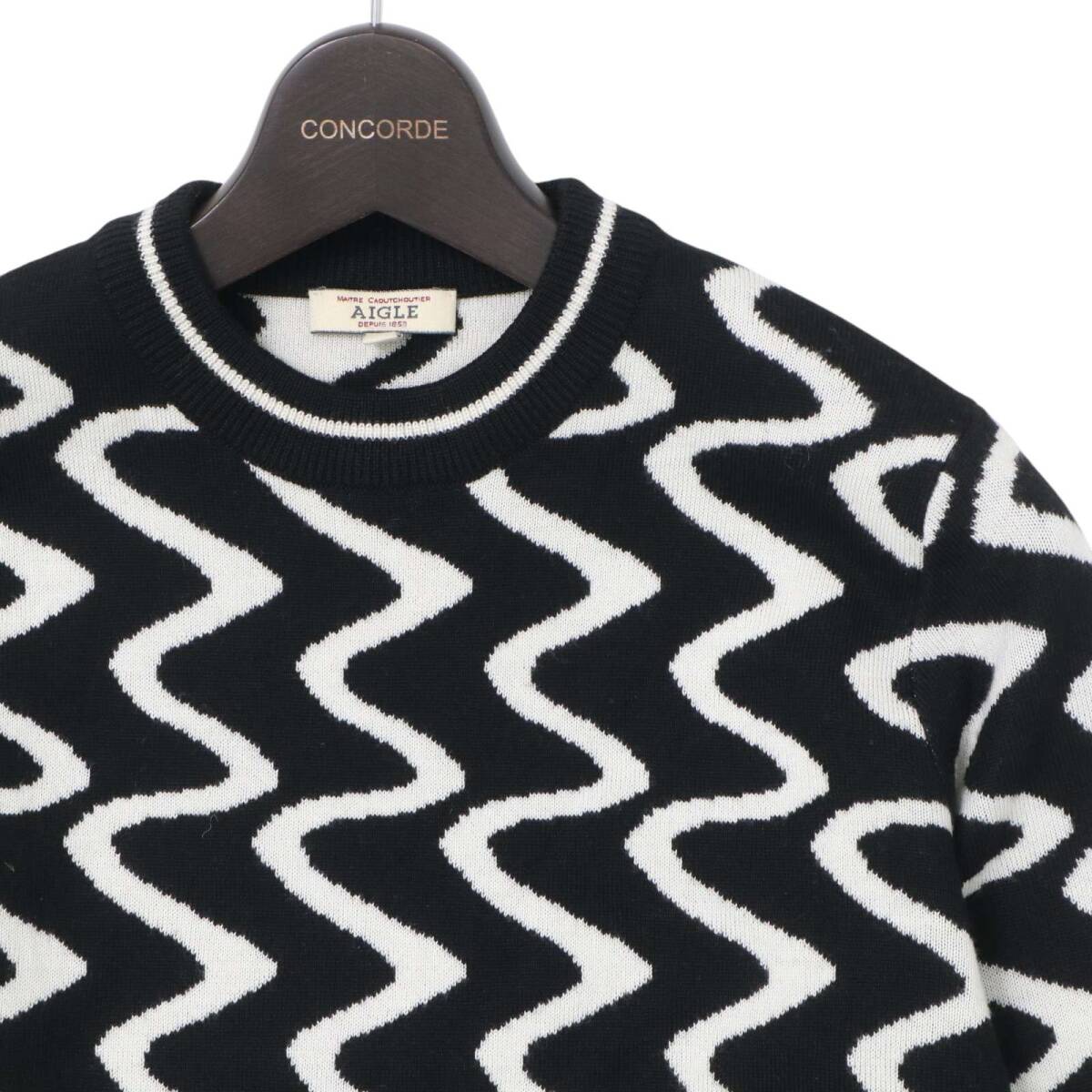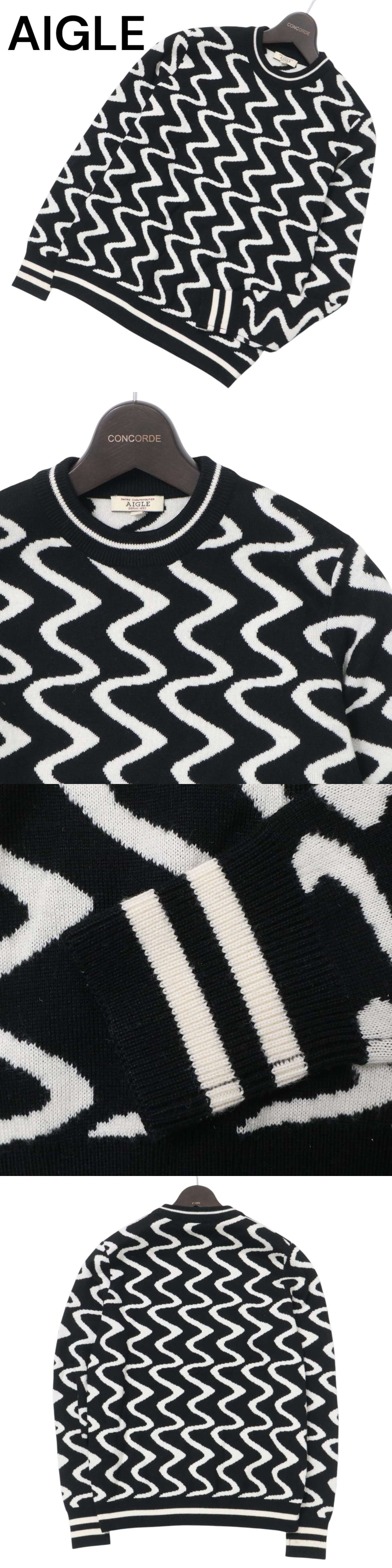 AIGLE エーグル 秋冬★ ジグザグ 幾何学模様 ウール セーター ニット プルオーバー Sz.S メンズ アウトドア