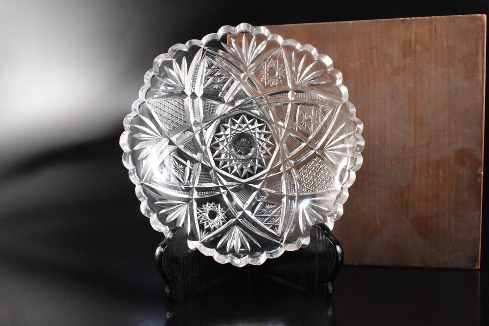 | 商品名 | 【雲】某名家買取品 ガラス製 切子 模様彫刻 皿 直径17.3㎝ 木箱 古美術品(懐石料理道具 飾皿 旧家蔵出) F5734 |