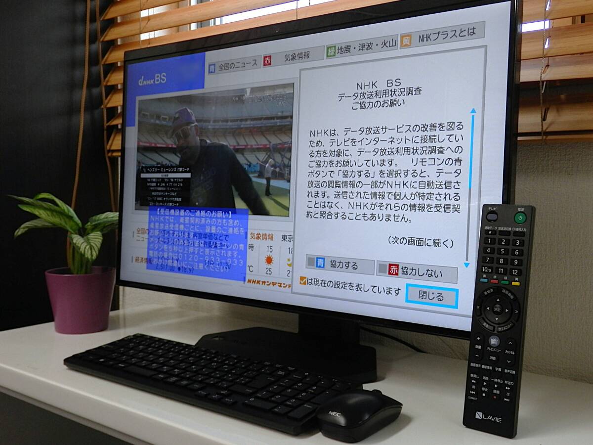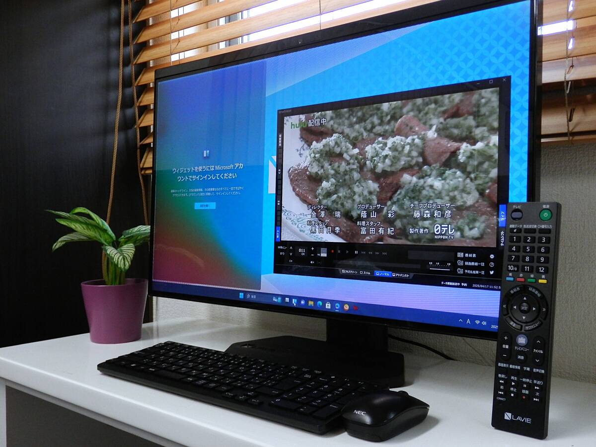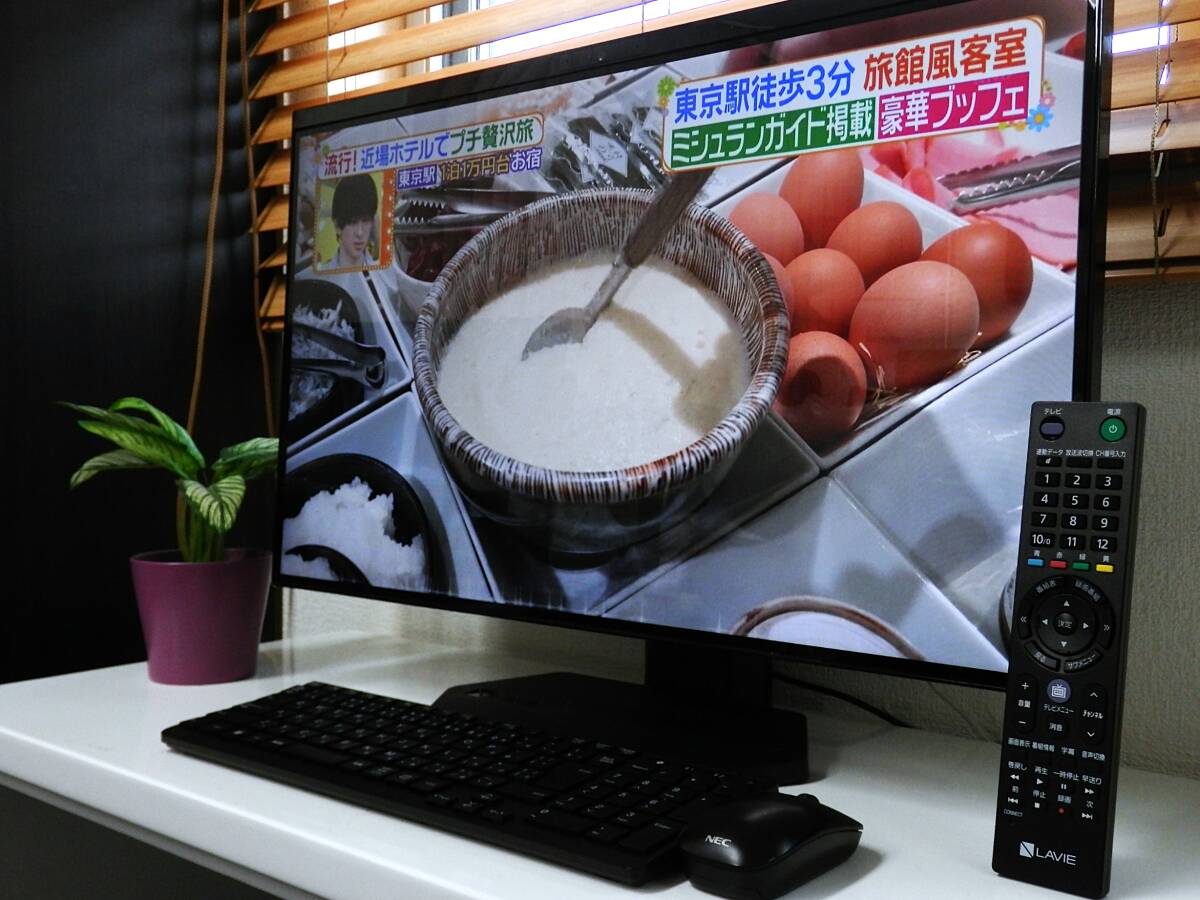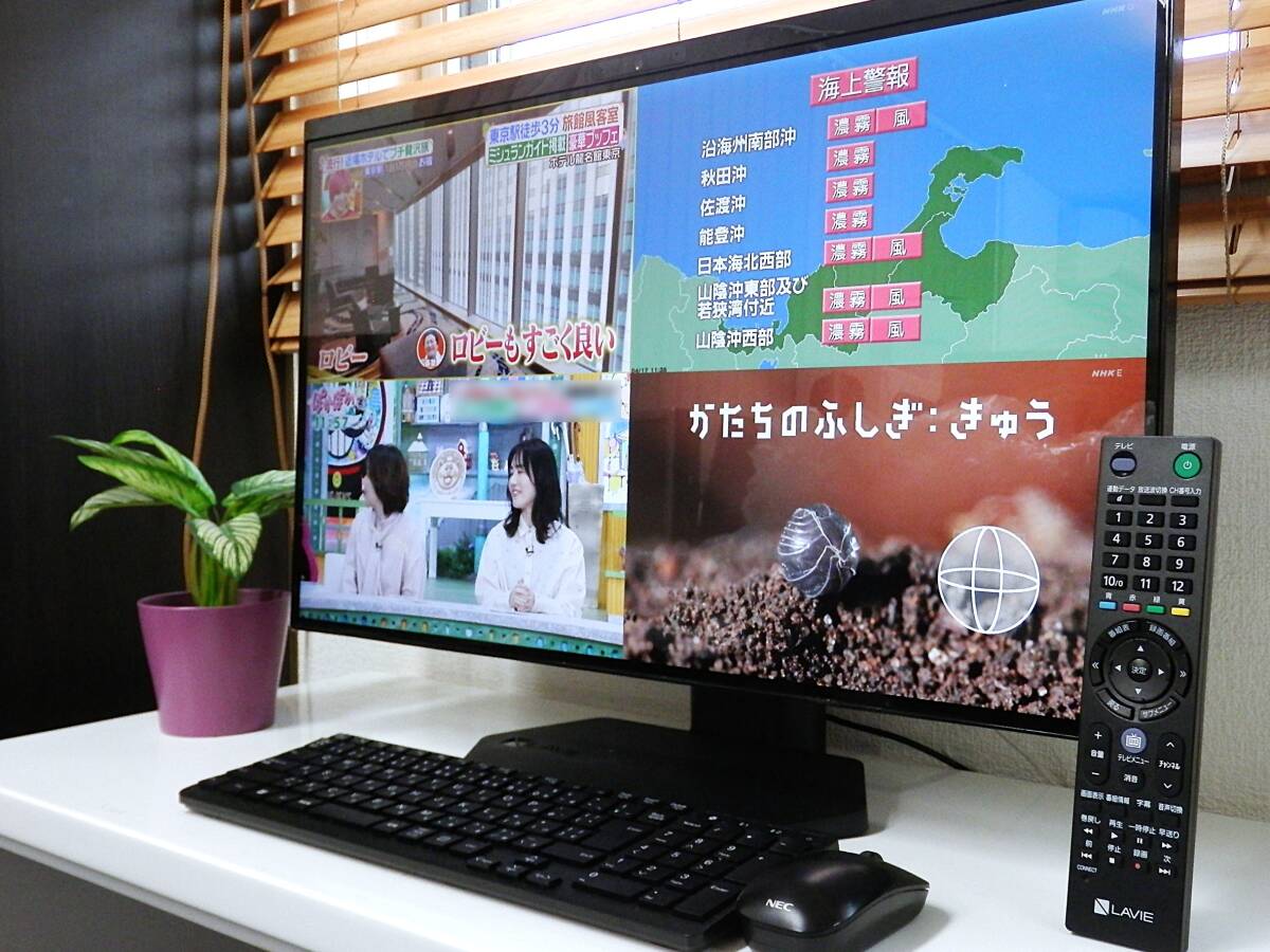 あなたに長く寄り添うデスクトップパソコン。。 目線に合わせた高さ調整が可能。♪ 多彩なテレビ機能搭載の「LAVIE Desk All-in-one」!! 先進の生成AI機能を搭載。 大画面で高画質動画の再生や編集、オンラインゲームが思いのまま もっと広がる、ハイレゾの楽しみ。 臨場感あふれる映像とサウンドを楽しめる 大画面液晶搭載オールインワンPC!! ※注:画像写真の液晶パネル右上部角の白い影は、天井照明の反射です。 ■こちらのPCは、記憶媒体をPCIeGen4にアップグレードとメモリを max32GBに増設後領域作成&リカバリ、 そして Windows11Pro(24H2)へアップグレード済み。 メーカー名 : NEC 型名 : GD18SC ☆ 仕様 ☆ ● CPU AMD Ryzen 3 5700U モバイル・プロセッサー 2.60GHz(ブーストクロック 最大3.80GHz.8コア/16スレッド) ● OS Windows 11Pro 64ビット 正規版(24H2) ● ハードディスク 新品M.2 NVMe PCIe Gen 4 1TB ● メモリー 32GB (増設済み) ● DVD/CD 4K対応 UHDブルーレイディスクドライブ(DVDスーパーマルチドライブ機能付き) ● その他 23.8型ワイドISP液晶/地上波・BS・CSデジタルTV無線LAN/Bluetooth/HDMI入力端子/その他 ● リカバリ領域 有り(リカバリdisk作成可能) 詳しいスペックはこちら・・・クリック !! ☆Microsoft Office 2021 ProPlus インストール済み(最新正規版認証済み.※プロダクトキー付属) 付属品 : ACアダプタ/純正ワイヤレスマウ&スキーボード/リモコン /miniB-CASカード(本体装着済み) 状態 : 基本動作・ブルーレイ&DVD/CD読み書き確認済み。動作良好です。 地上&BS/CS波視聴&録画と、4チューナー同時表示確認済み。。 Fire TV Stickにて、HDMI外部入力確認済み。 本体外観に目立つ傷の無い、比較的綺麗な推薦良品です。 | |||