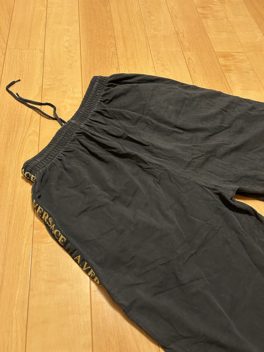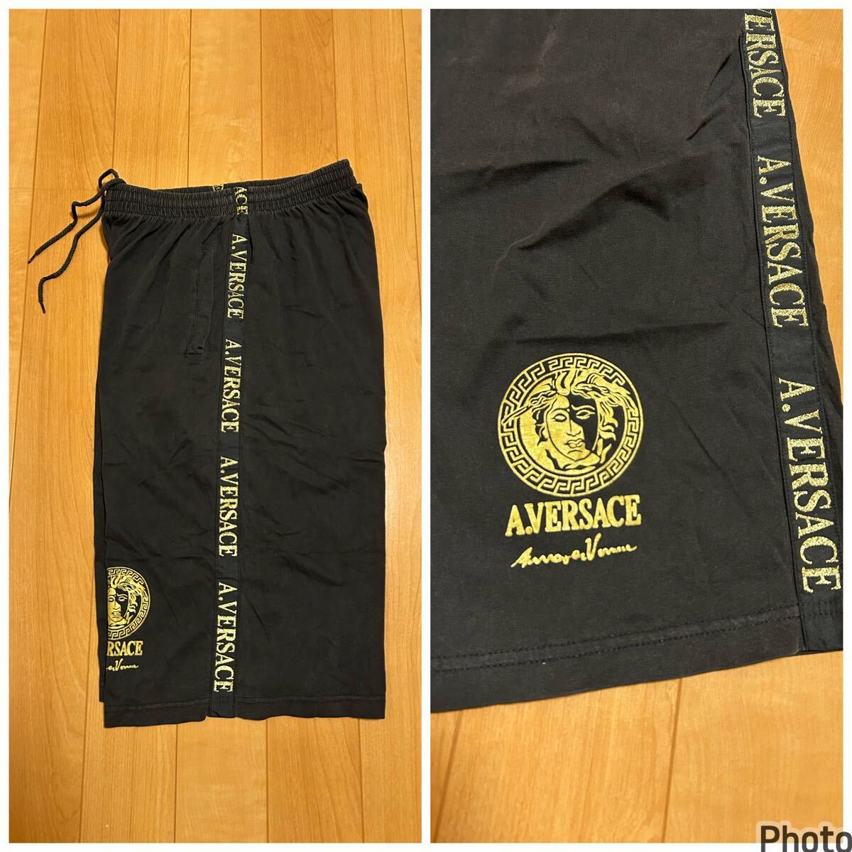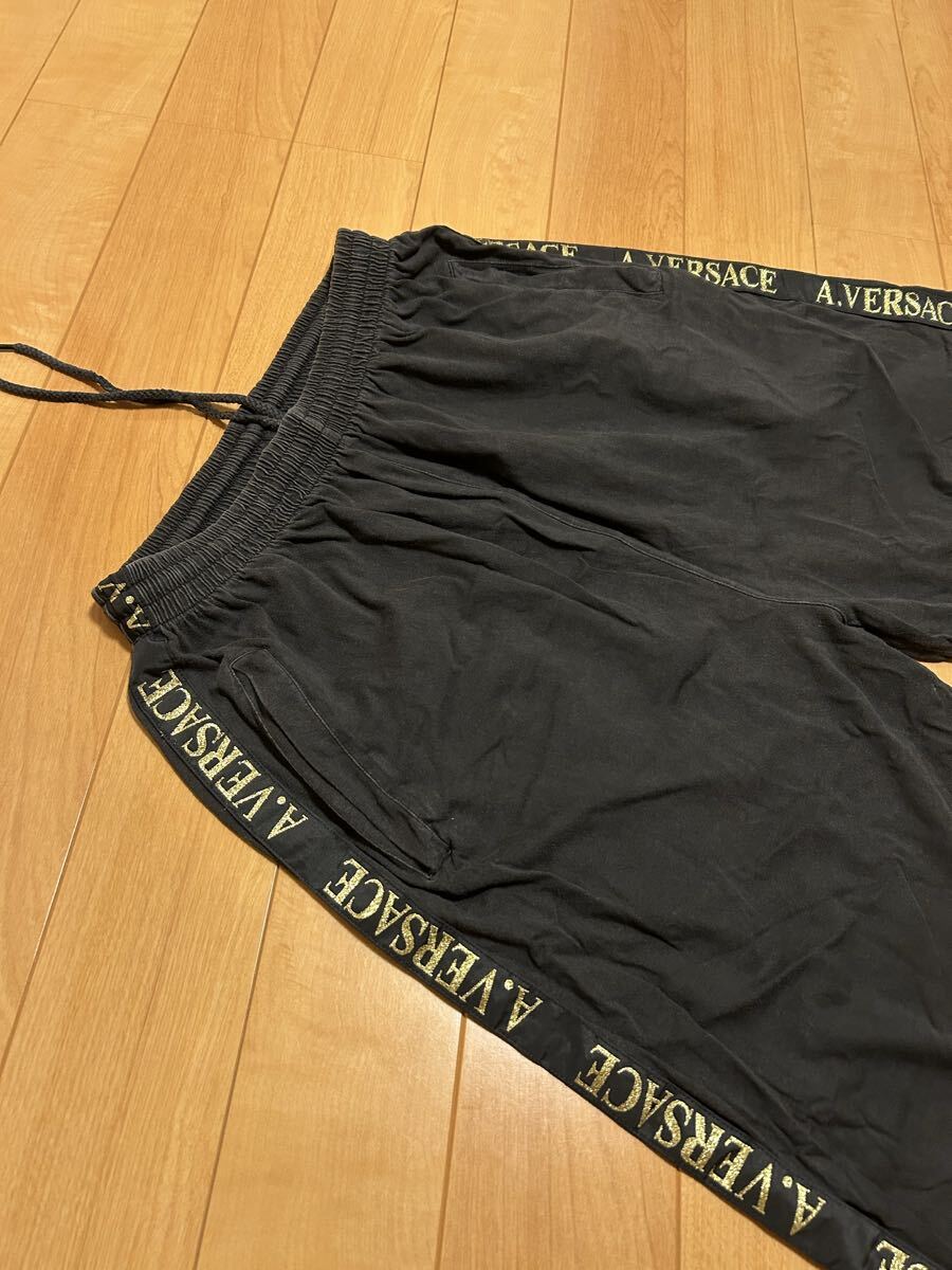 ☆90s-Y2K・AV/A.VERSACE メンズサイズL ブラックコットン.イージーハーフパンツ/ワイドボクサー型 メデューサ&サイドロゴライン入!黒
