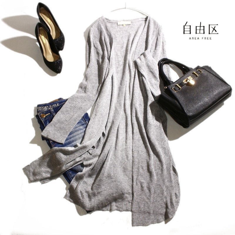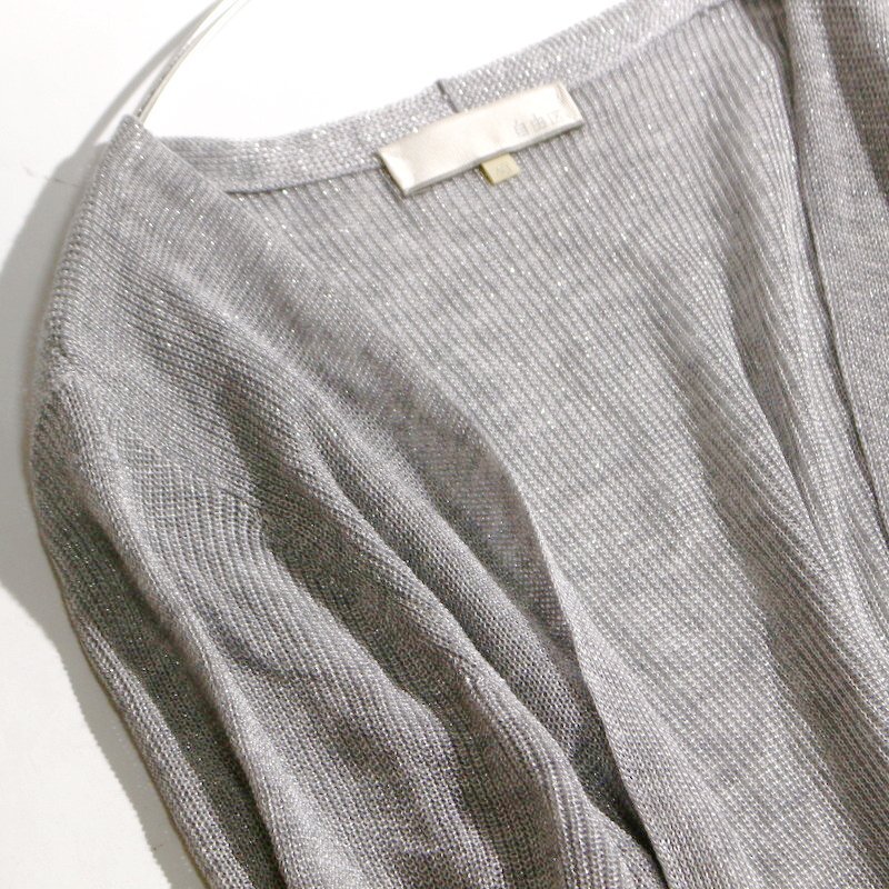 美品 ジユウク 自由区 株) オンワード樫山 ストレッチ 透け ラメニット カーディガン 11号 40 シルバー ロングカーディガン サマーニット