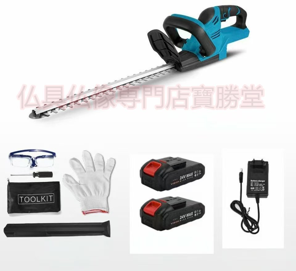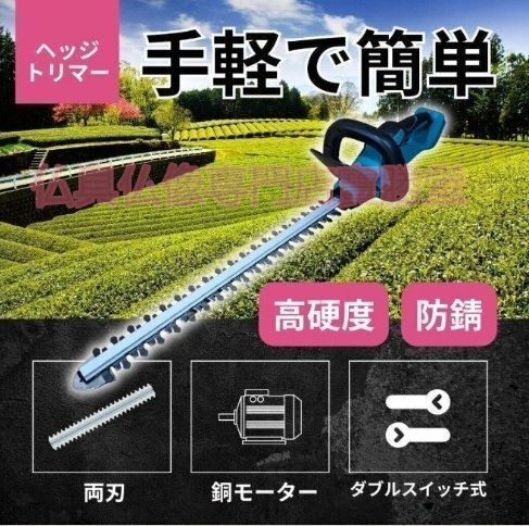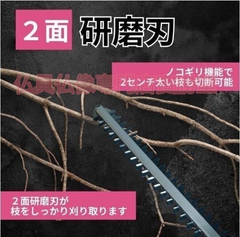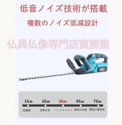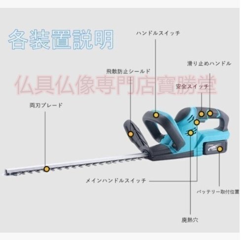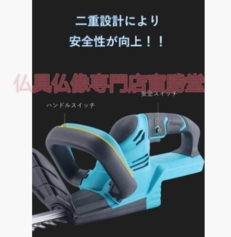 【寶勝堂】充電式ヘッジトリマー チェーンソー 刈込幅490mm 両刃駆動 芝刈り機 生垣バリカン バッテリー2枚 園芸用 庭木バリカン 剪定機械