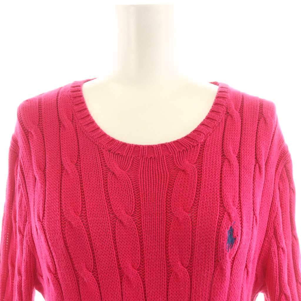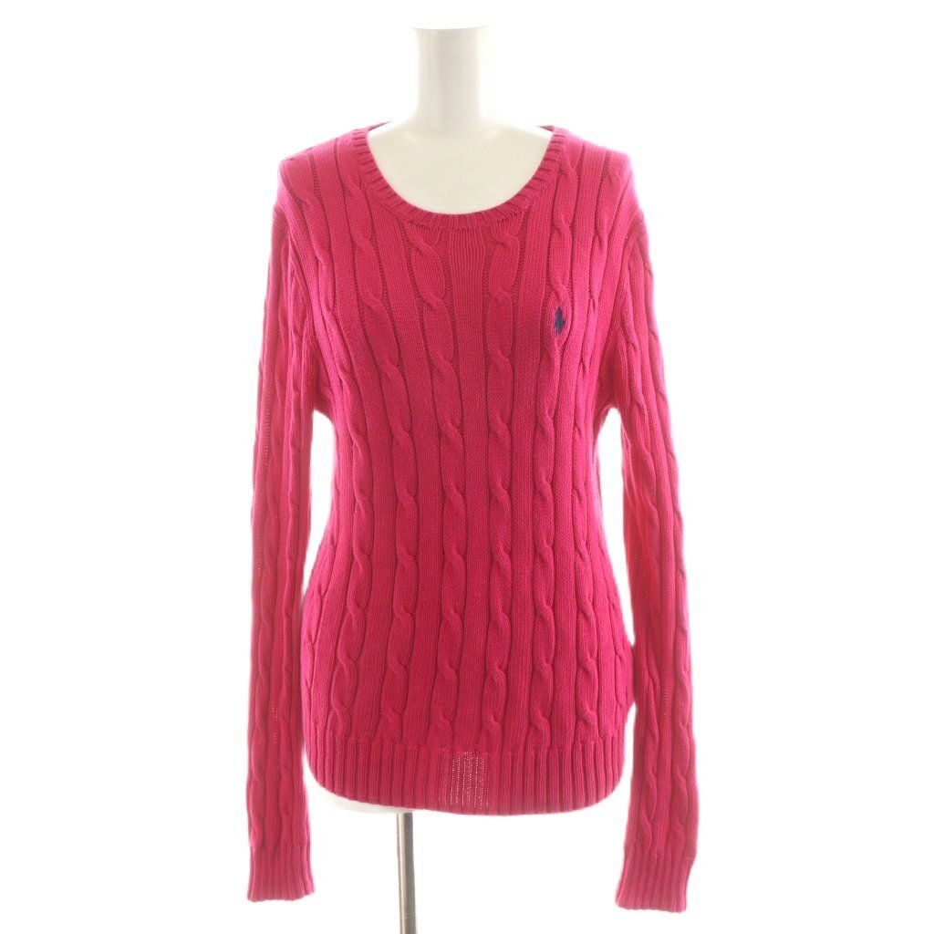 ポロ ラルフローレン POLO RALPH LAUREN ケーブルニット セーター 長袖 ロゴ刺繍 コットン M ピンク /AN50 レディース