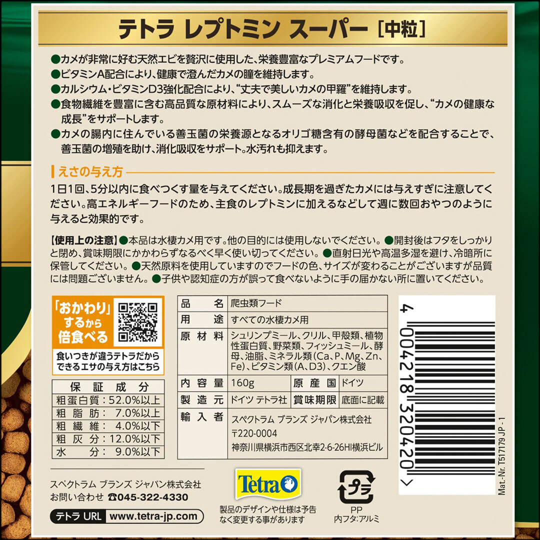 ★ レプトミンスーパー中粒160g テトラ(Tetra) 水棲ガメ用浮上性フード 新品 消費税0円 ★