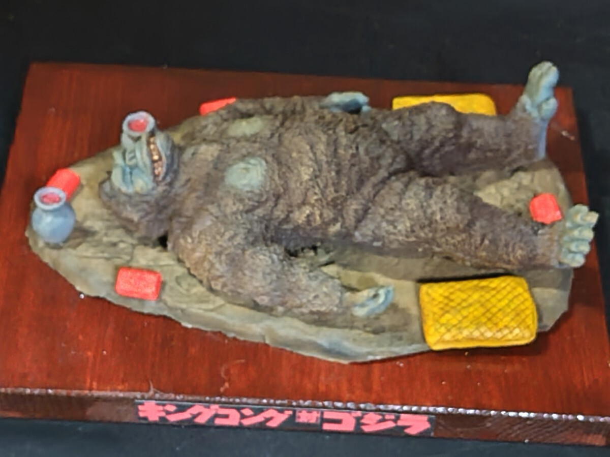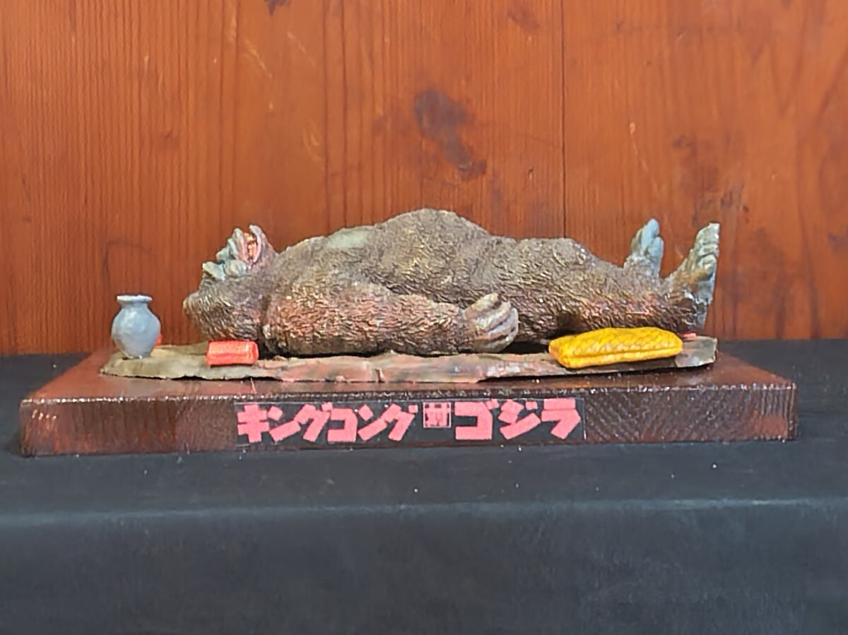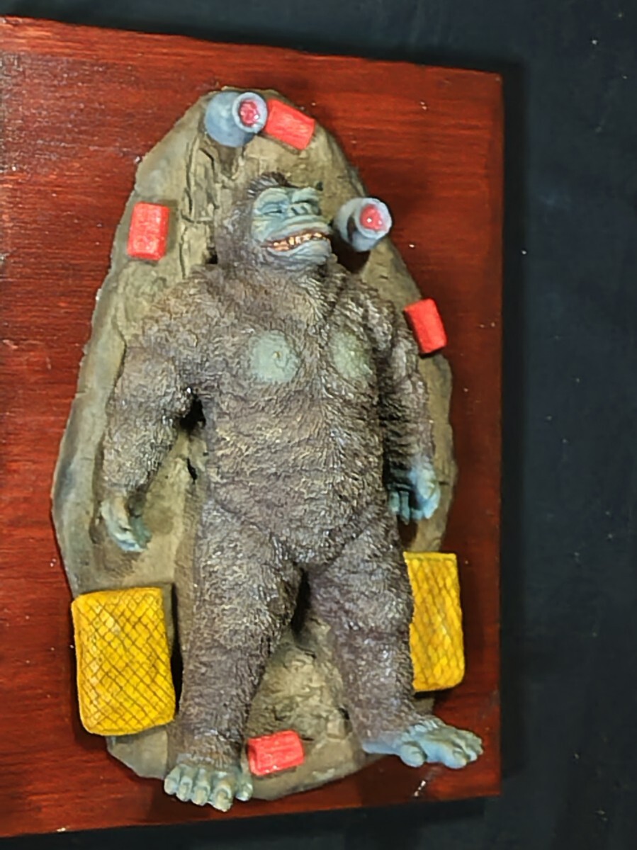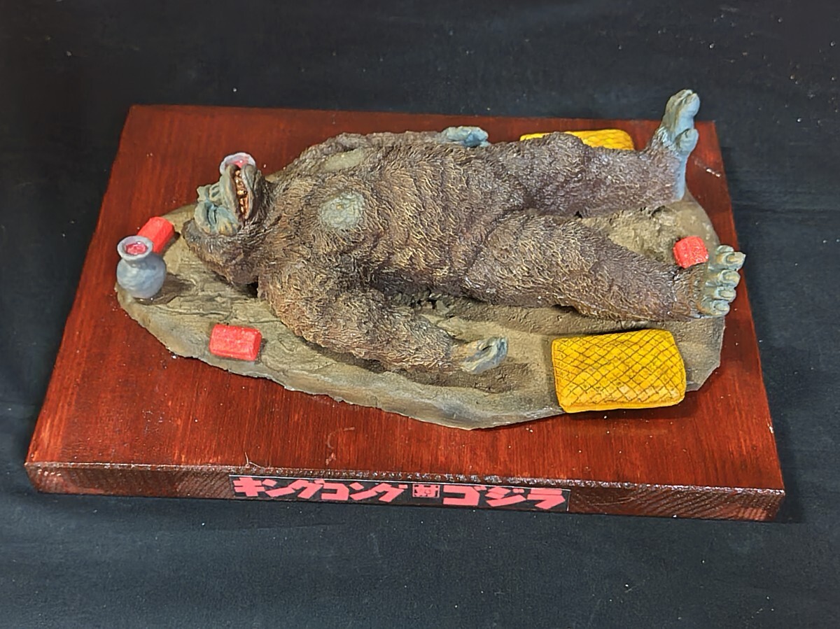 【★メーカー不明、(キングコング対ゴジラ)よりキングコング輸送大作戦・レジンキャストキット完成品。サイズ・ キングコング全長約20センチ、他社レジンキットベース完成品取り付け済木製ベース255mm185mm、◆尚、組立塗装後、商品箱、説明書、完成品見本写真は処分した為付属しておりません。悪しからずご了承下さい。リーズナブル価格よりスタートさせて頂きます。尚、レジンベースと小物類は木製ベースに固定してありますがキングコングは輸送中の破損を考慮してベースには取り付けてありません。落札者様自ら配置の方をよろしくお願いします。